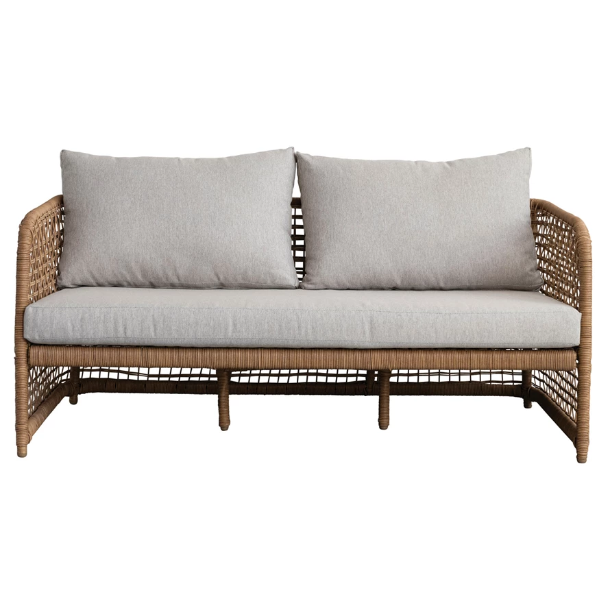 Catalog Name: 64-1/2"W x 34-1/4"D x 30-1/2"H Hand-Woven Plastic Wicker Indoor/Outdoor Sofa w/ Fabric Cushions, Natural & Cream Color, Truck Ship