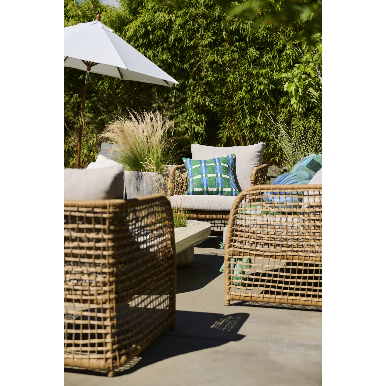 Hand-Woven Plastic Wicker Indoor/Outdoor Sofa with Fabric Cushions