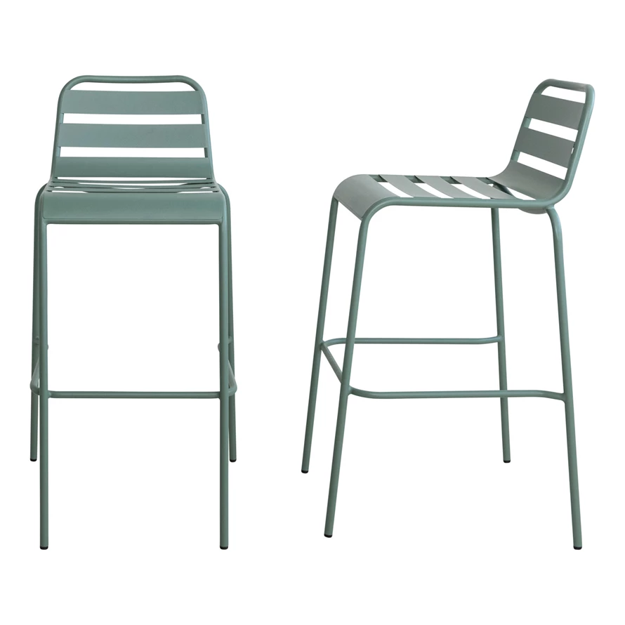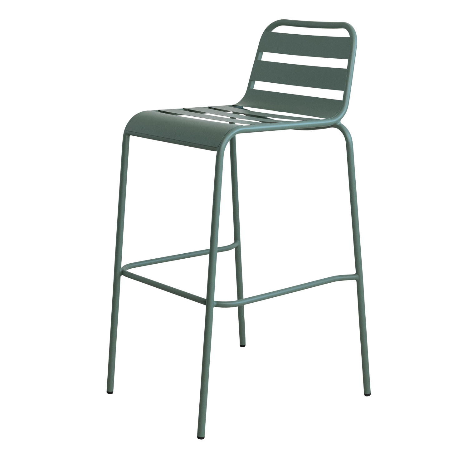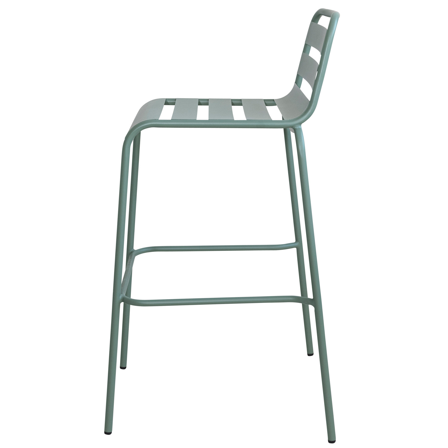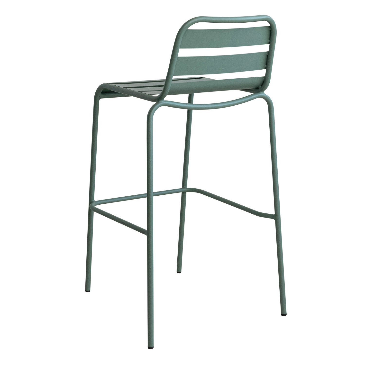 Metal Slatted Indoor/Outdoor Bar Stool, Eucalyptus Color