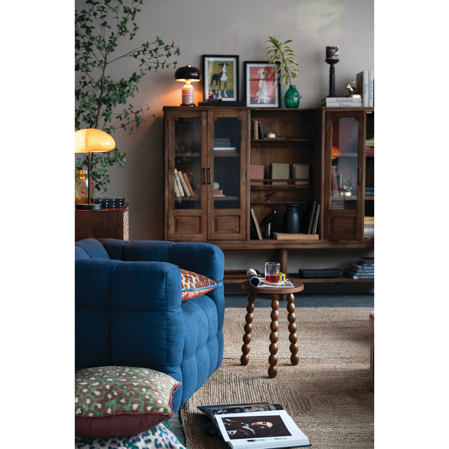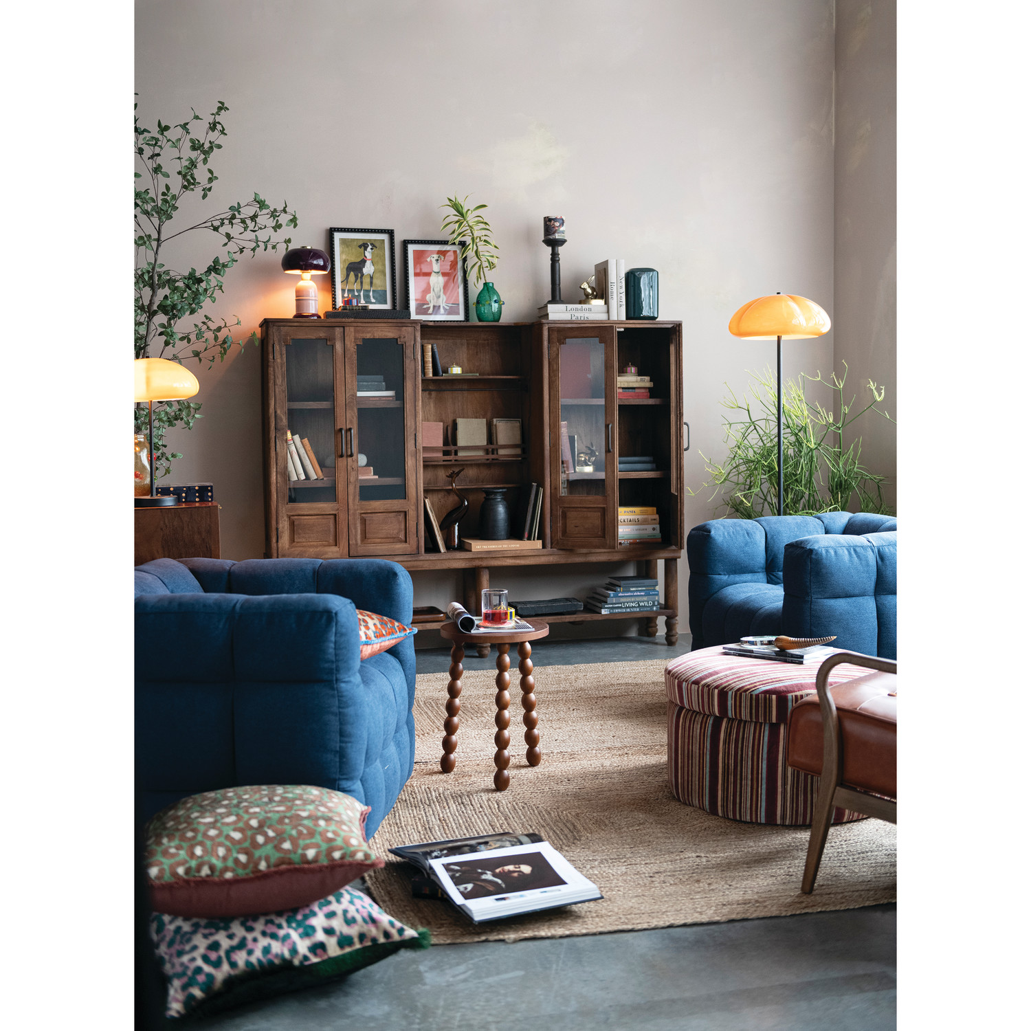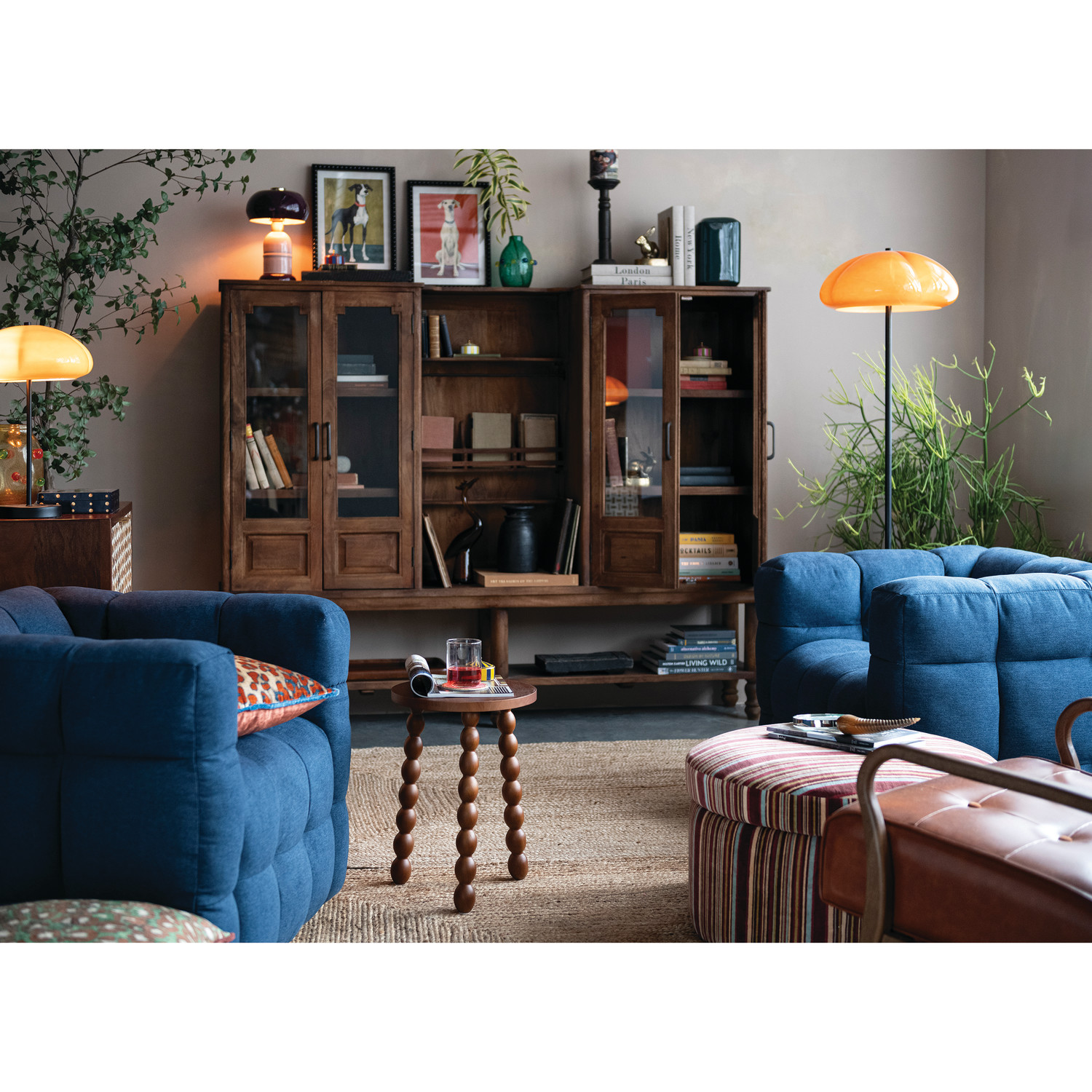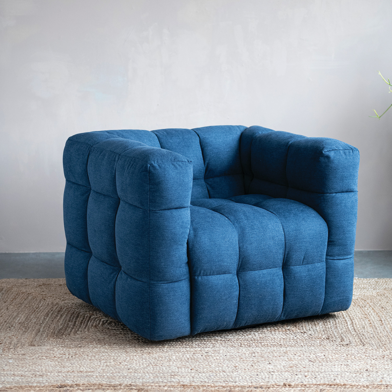 Fabric Upholstered Tufted Swivel Arm Chair, Navy Color
