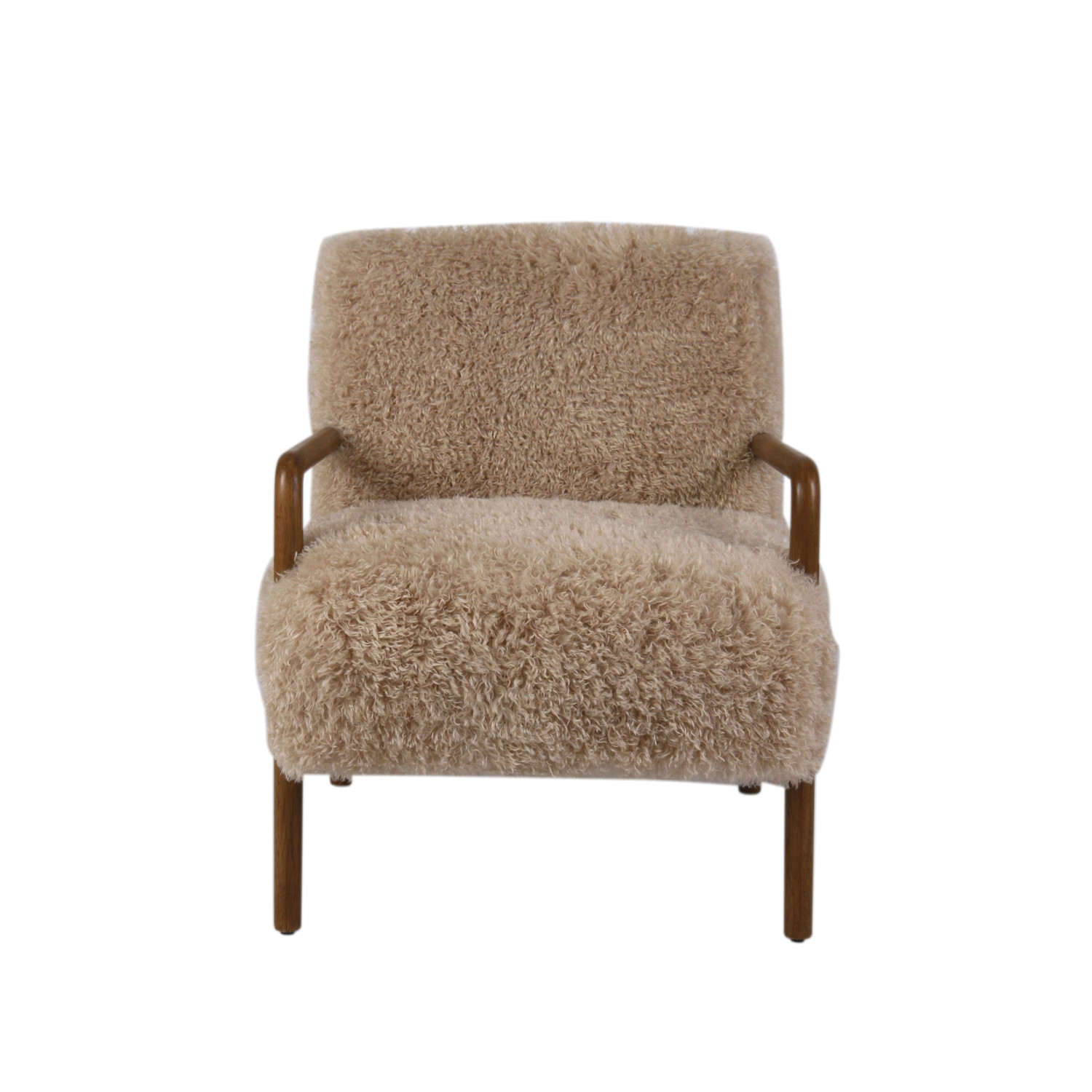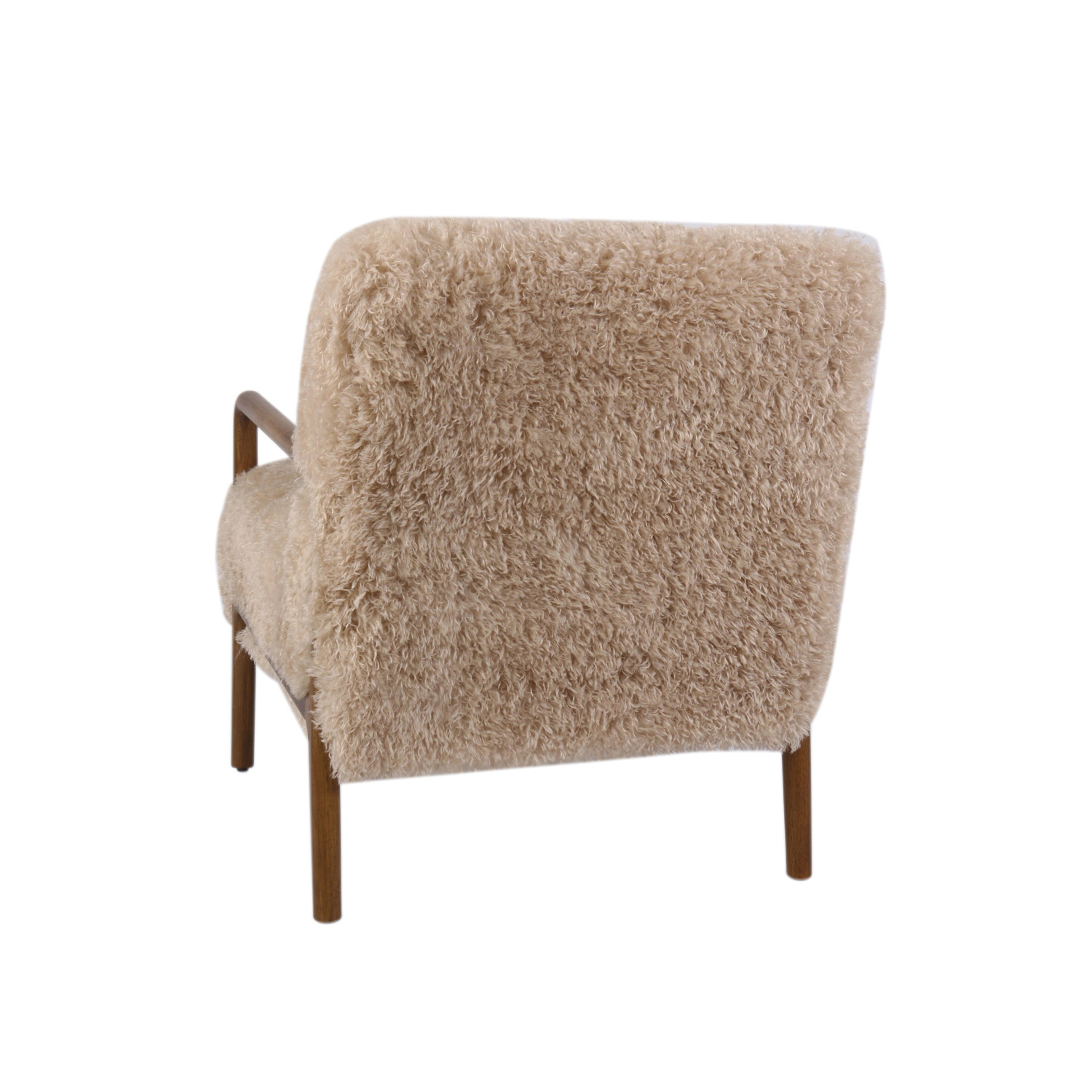 Catalog Name: 25-1/2"W x 29-3/4"D x 31-3/4"H Faux Fur Upholstered Chair w/ Rubberwood Frame, Cream Color & Walnut Finish, KD, Truck Ship