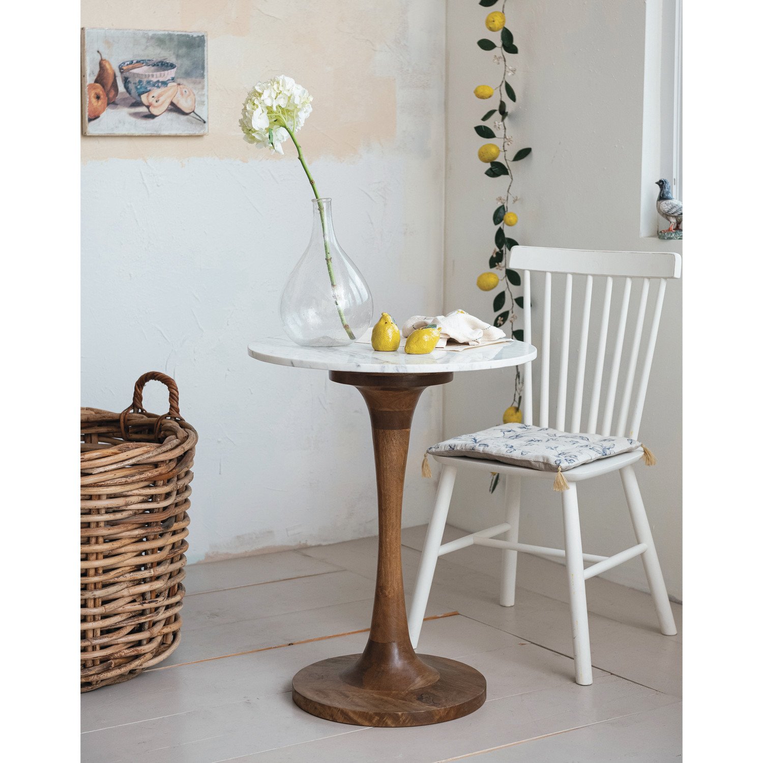 Mango Wood & Marble Tulip Table, Natural & White, KD