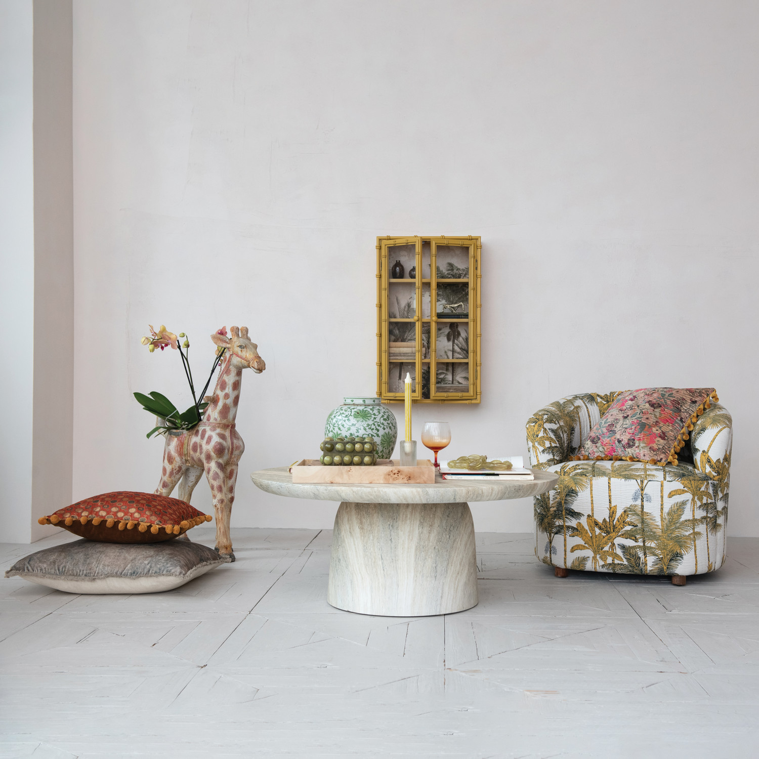 Catalog Name: 39-1/2" Round x 17"H Lightweight Eco Stone Indoor/Outdoor Table, Travertine Finish, Truck Ship