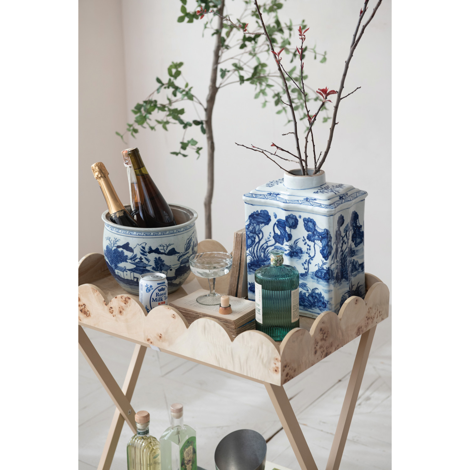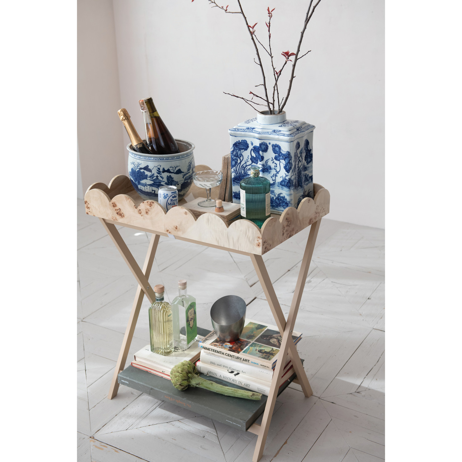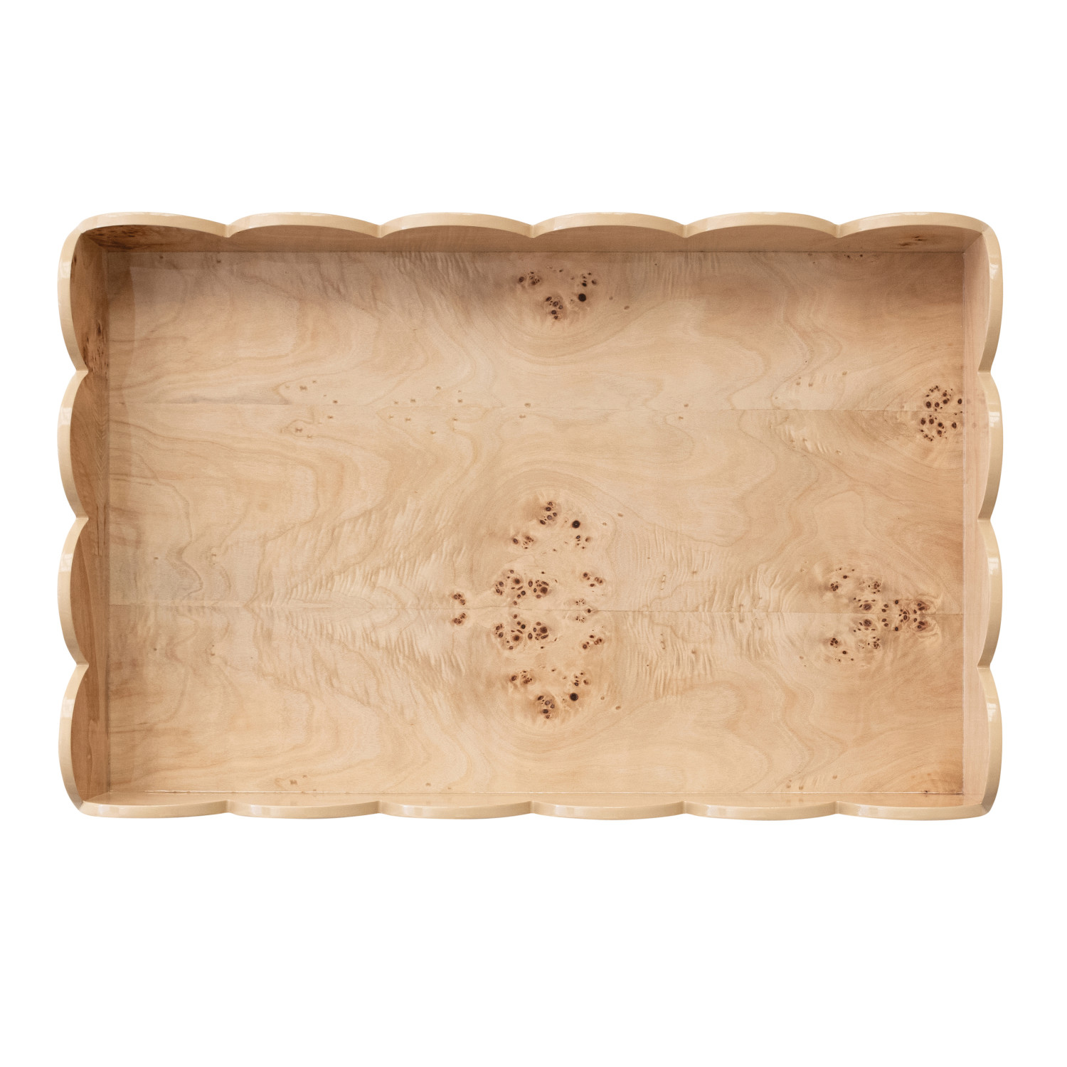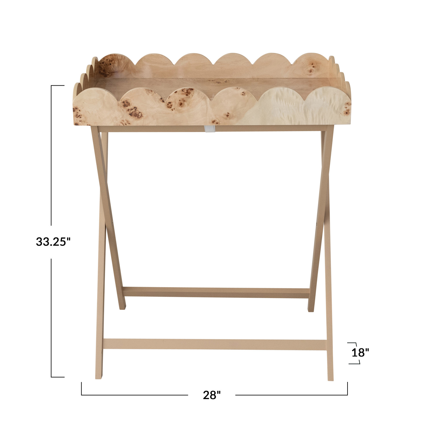 MDF & Burl Wood Veneer Folding Table w/ Removable Scalloped Tray, Natural, KD