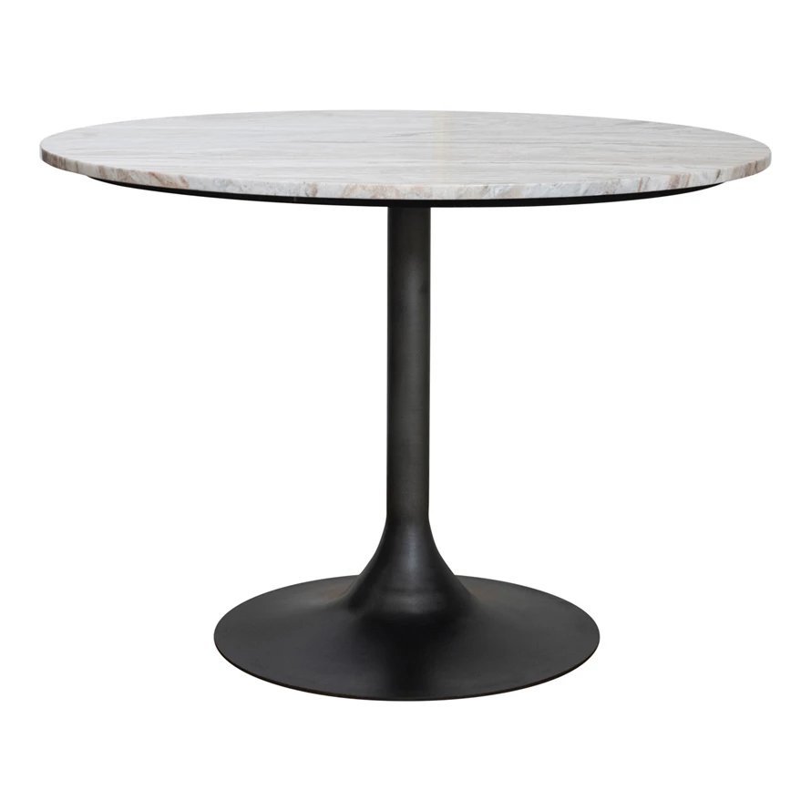 Catalog Name: 43-1/2" Round x 31"H Metal Tulip Table w/ Marble Top, Charcoal Color & Beige Melange, KD, Truck Ship (Each One Will Vary)