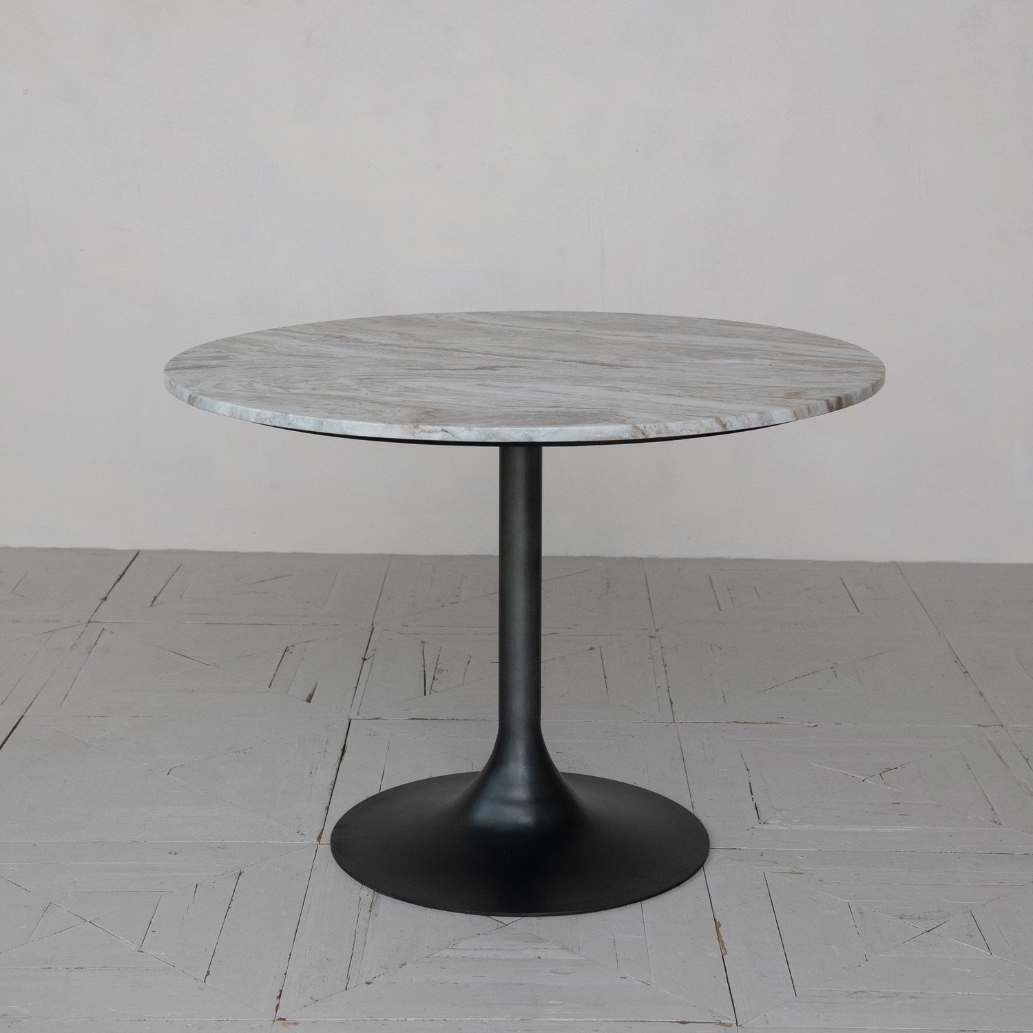Metal Tulip Table w/ Marble Top, Charcoal Color & Beige Melange, KD