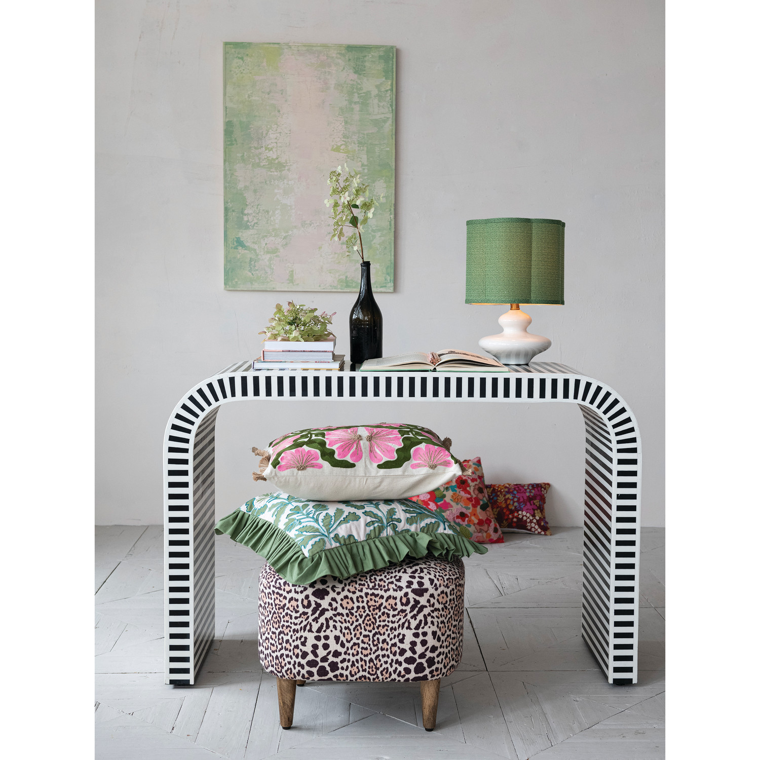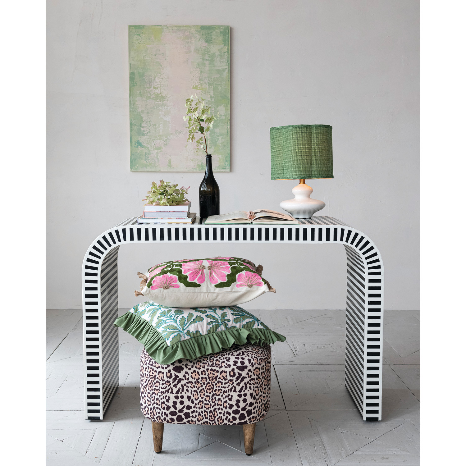 Catalog Name: 48"L x 16"W x 32"H MDF, Resin & Inlaid Bone Table w/ Stripes & Waterfall Edge, Black & Ivory Color, Truck Ship