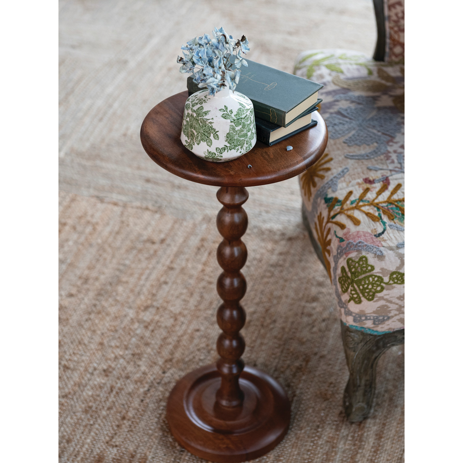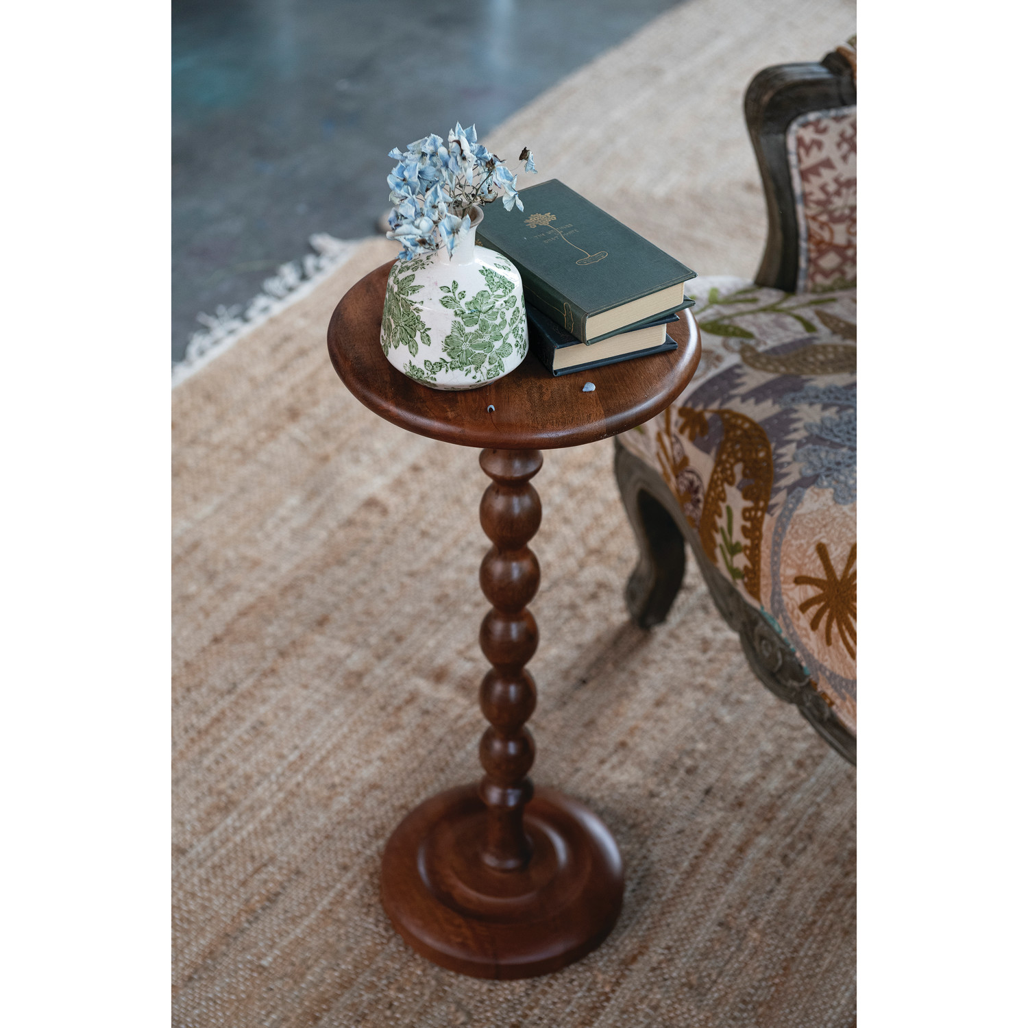Mango Wood Turned Martini Table, Walnut Finish
