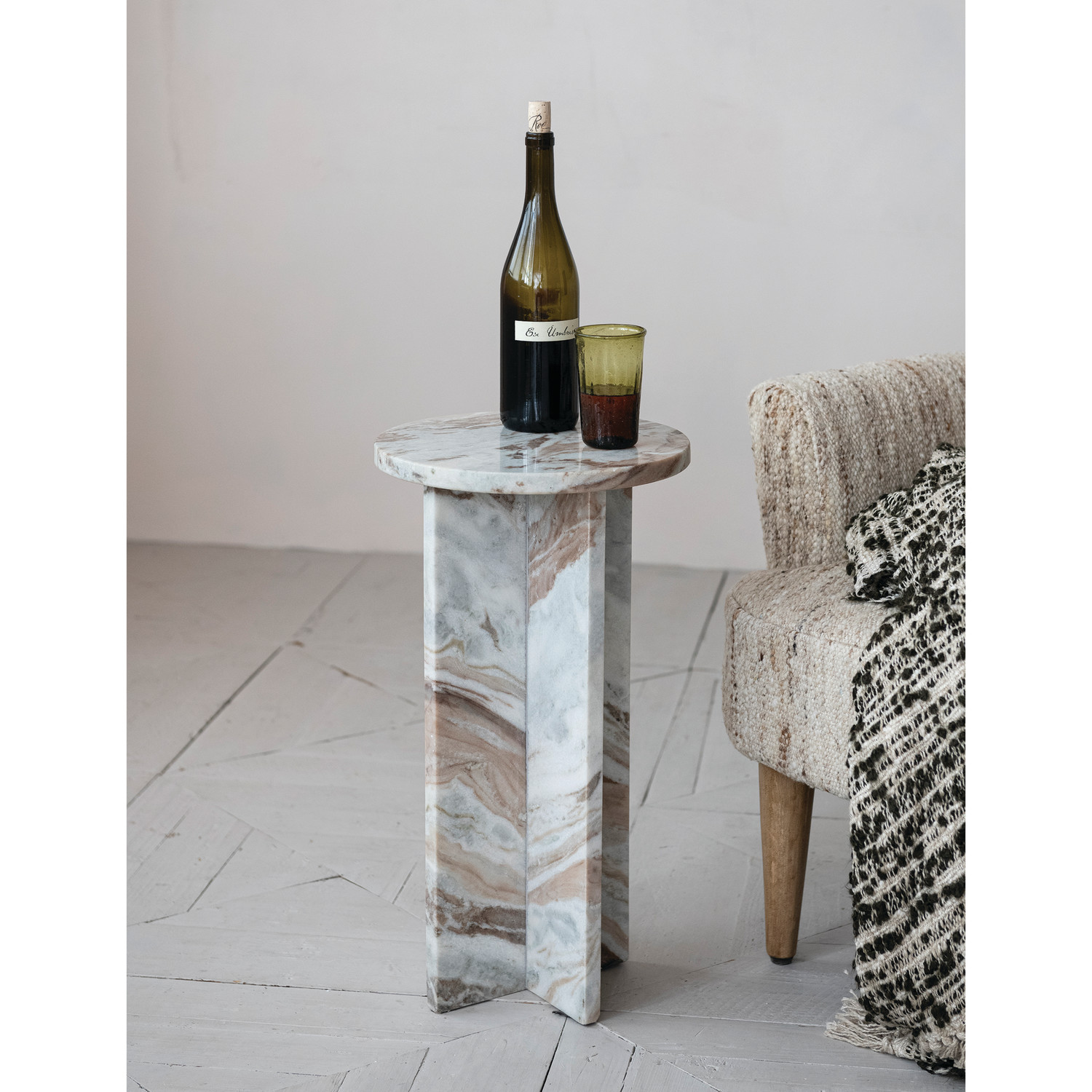 Catalog Name: 12" Round x 22"H Marble Table, Brown Torrento, Truck Ship