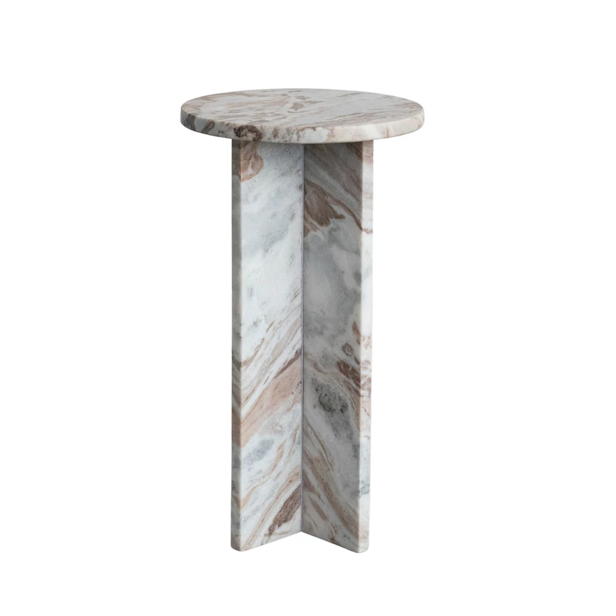 Catalog Name: 12" Round x 22"H Marble Table, Brown Torrento, Truck Ship