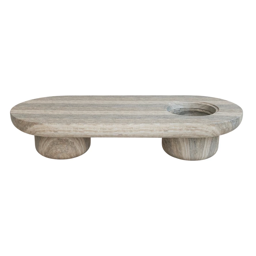 Catalog Name: 55"L x 23-1/2"W x 12"H Lightweight Eco Stone Indoor/Outdoor Table w/ Planter & Drainage Hole, Travertine Finish, Truck Ship (Holds 10" Pot)