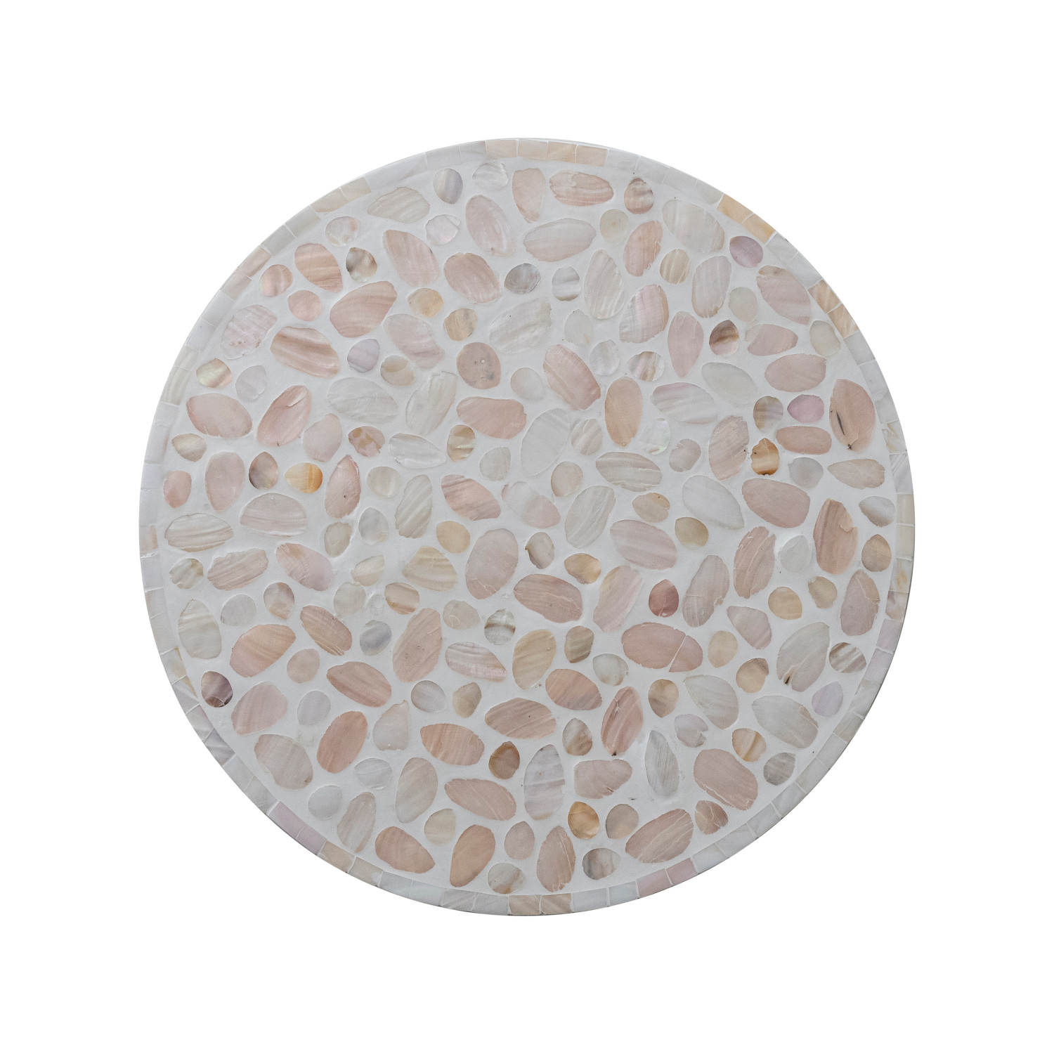 Catalog Name: 15-3/4" Round x 22"H MDF & Mother of Pearl Mosaic Table, White & Natural