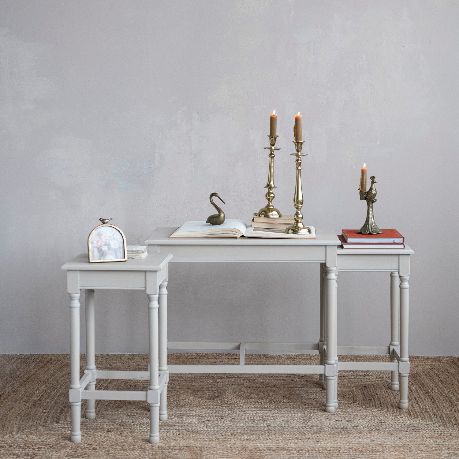 Catalog Name: 29"W x 18"D x 26"H & (2) 13-1/4" Square x 24"H MDF & Wood Nesting Tables, Taupe, Set of 3, KD
