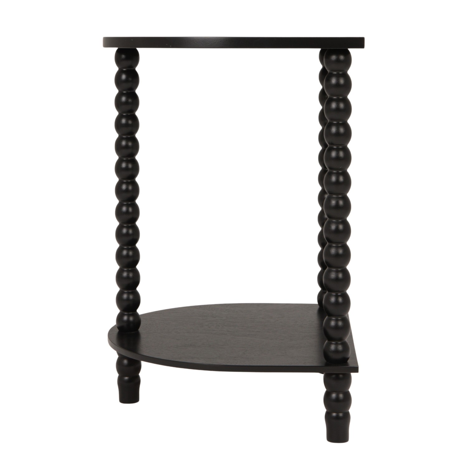 Catalog Name: 17-1/4"W x 14-1/2"D x 22"H MDF & Wood Demilune Table w/ Turned Legs & Shelf, Black, KD
