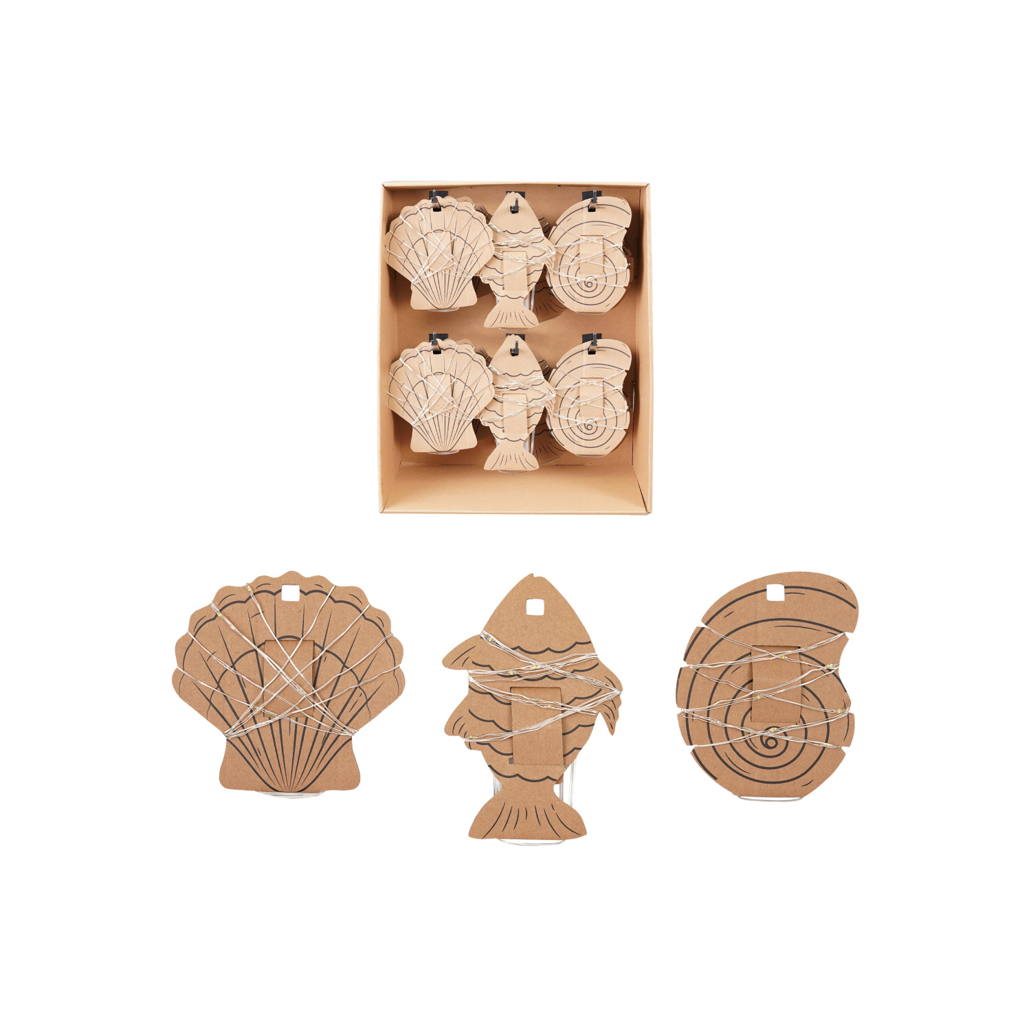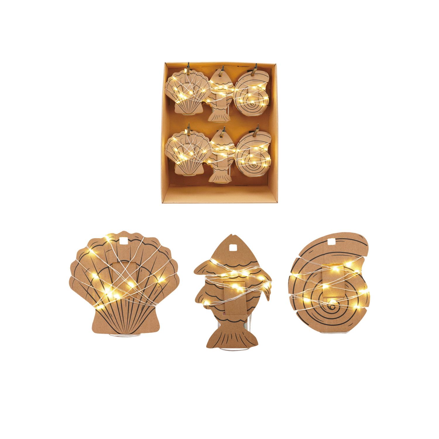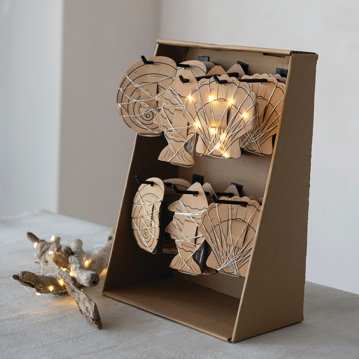Catalog Name: 74"L LED String Lights on 3 Styles of Paper Fish/Shell Display Cards w/ PDQ (Contains 36 Pieces) (Requires 2-AA Batteries)