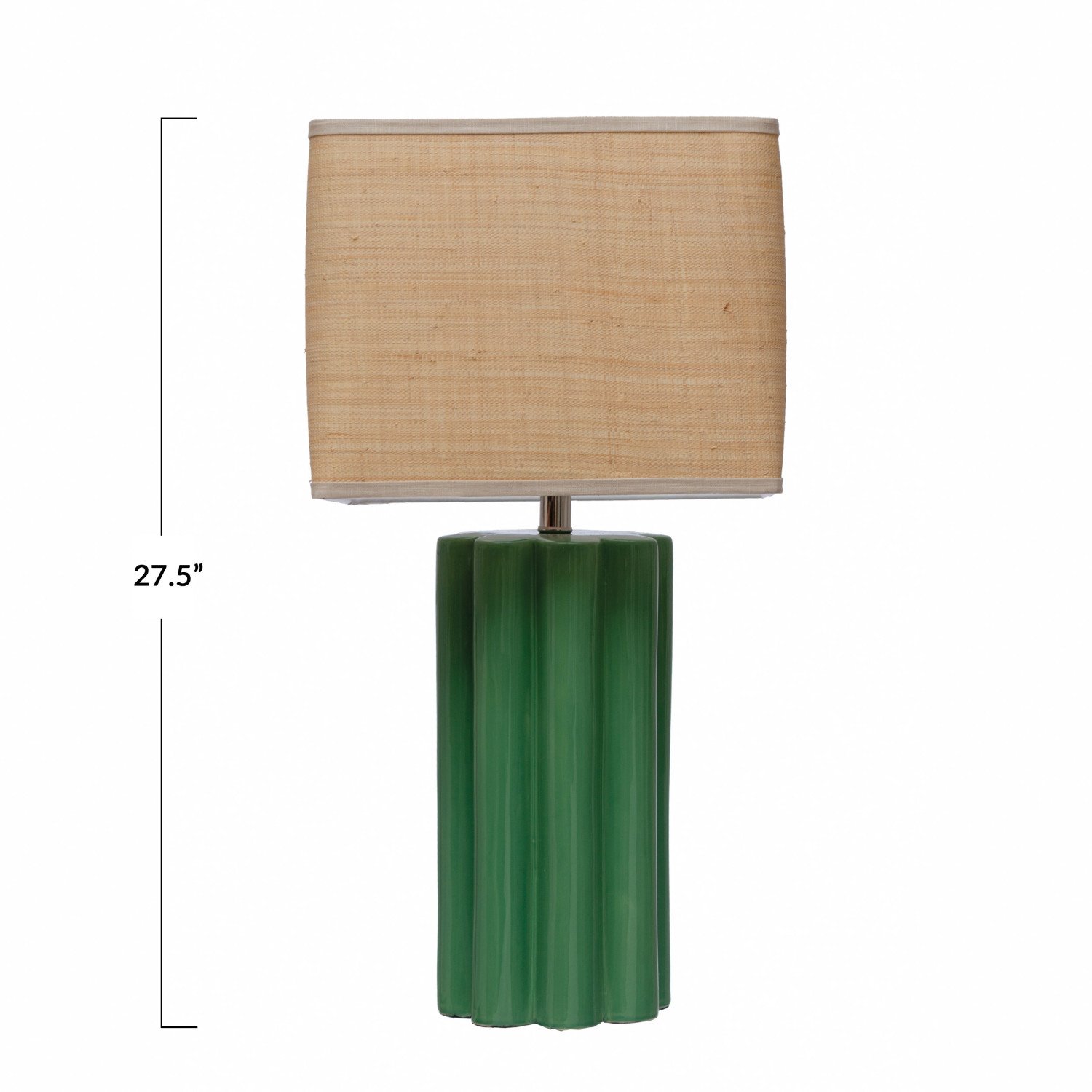Catalog Name: 15" Square x 28-1/2"H Stoneware Fluted Table Lamp w/ Raffia Shade, Green & Natural, Truck Ship