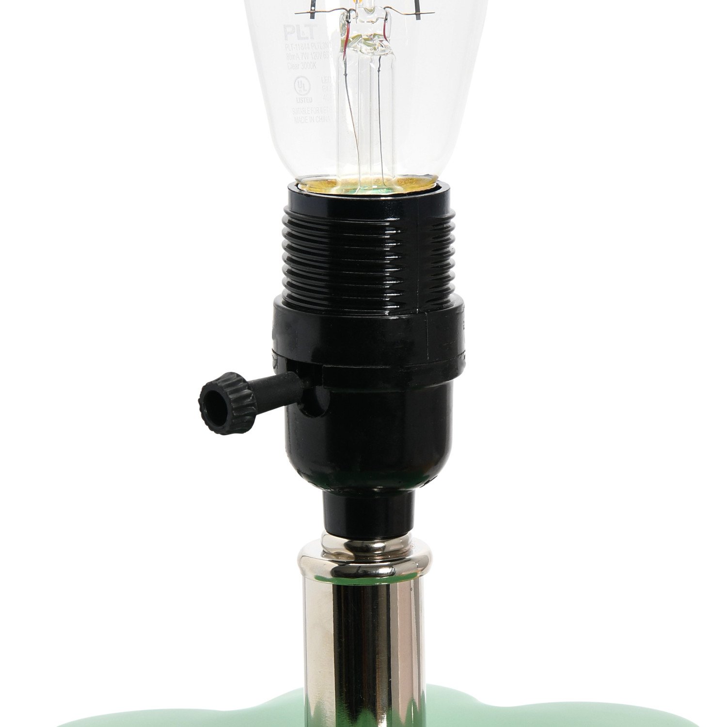 A stunning and modern table lamp that features a bright green stoneware base with a fluted sculptural shape, topped with a natural raffia shade. Ideal for adding a touch of color and texture to any room, especially for bohemian, eclectic, or contemporary home décor styles. Requires 1 150-watt bulb (not included); No switch on the lamp; Equipped with a rotary switch on the base for easy on and off. Made of stoneware, metal, raffia, and cord.