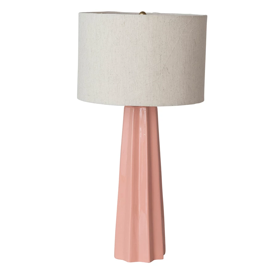 Catalog Name: 12" Round x 24"H Enameled Aluminum Fluted Table Lamp w/ Linen Shade, Pink