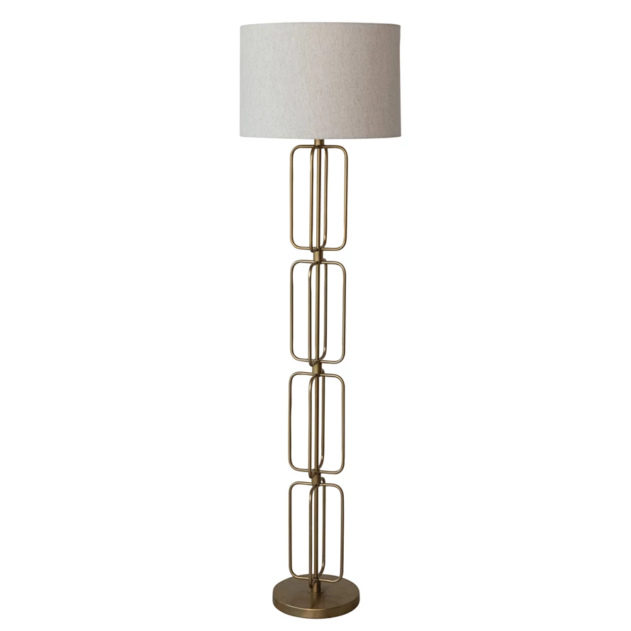 Catalog Name: 18" Round x 66"H Metal Wire Floor Lamp w/ Cotton Shade & Inline Switch, Gold Finish, Truck Ship