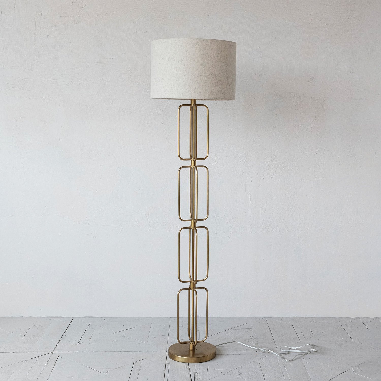 Metal Wire Floor Lamp with Cotton Shade & Inline Switch, Gold Finish
