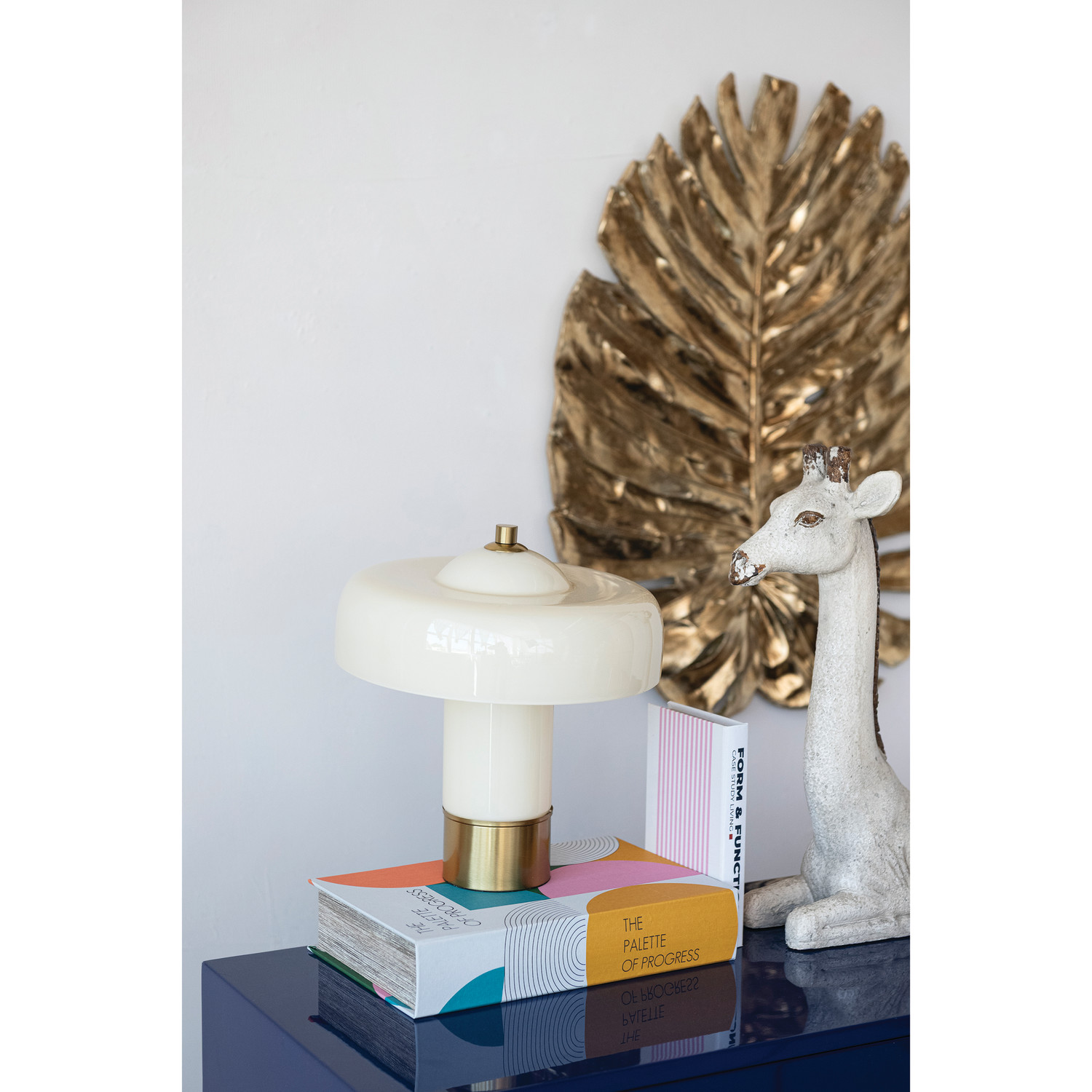 Glass & Metal Table Lamp with Inline Switch, Cream Color & Gold Finish