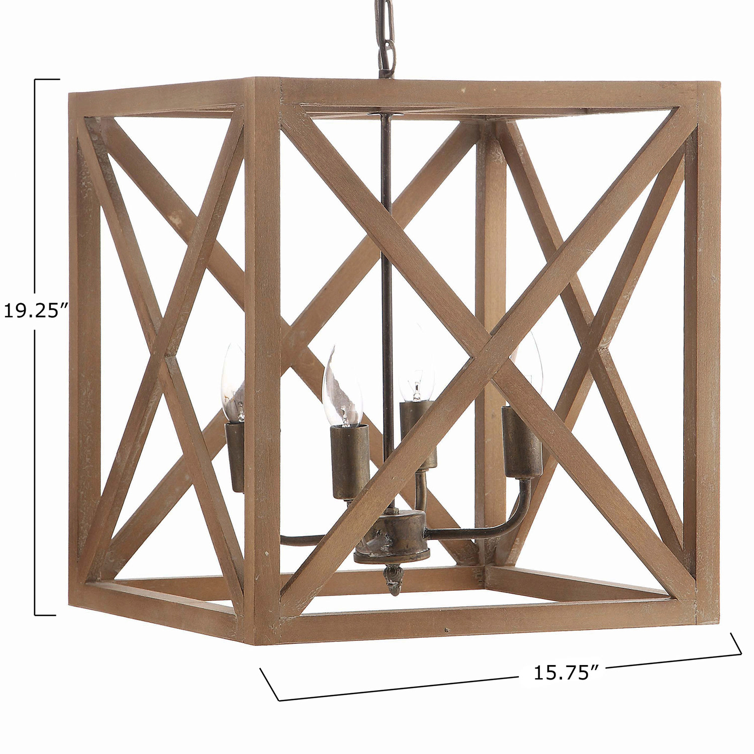 Catalog Name: 15-3/4" Sq x 17-3/4"H Metal & Wood Chandelier (25 Watt)