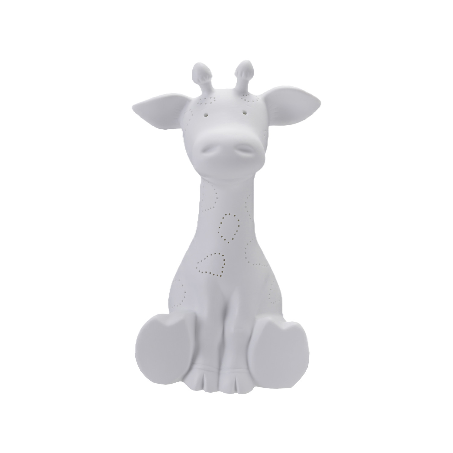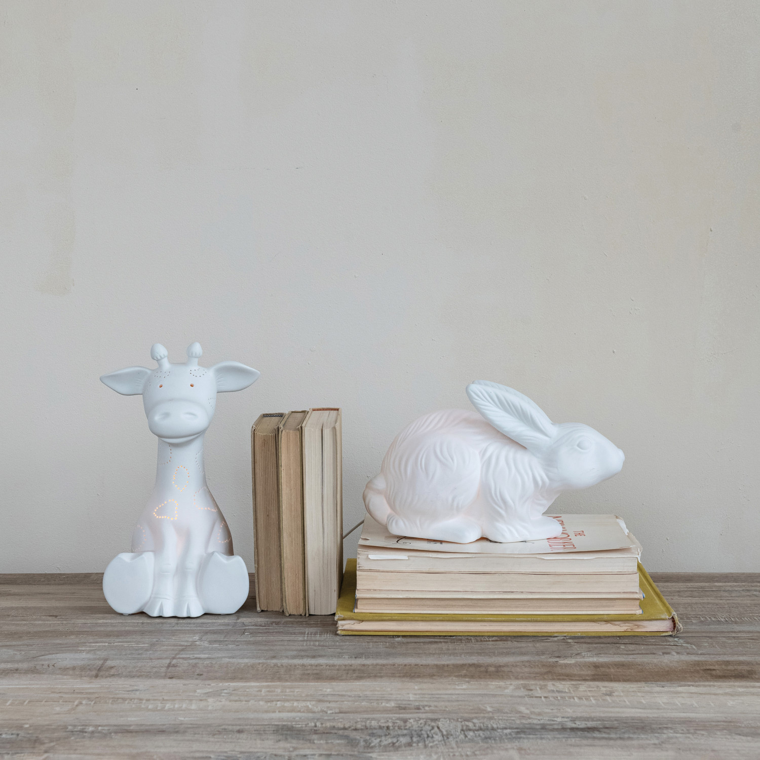 Catalog Name: 7"L x 5-3/4"W x 11-3/4"H Stoneware Giraffe Shaped Lamp w/ Cut-Outs & Inline Switch, Bisque White