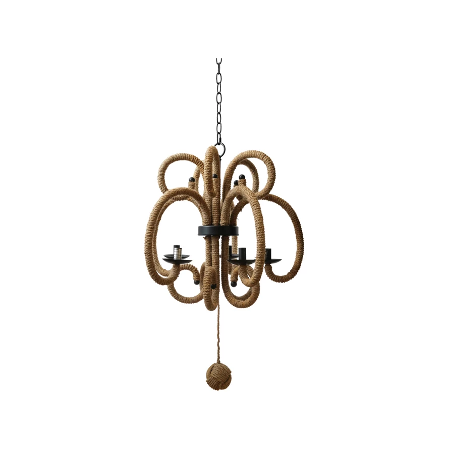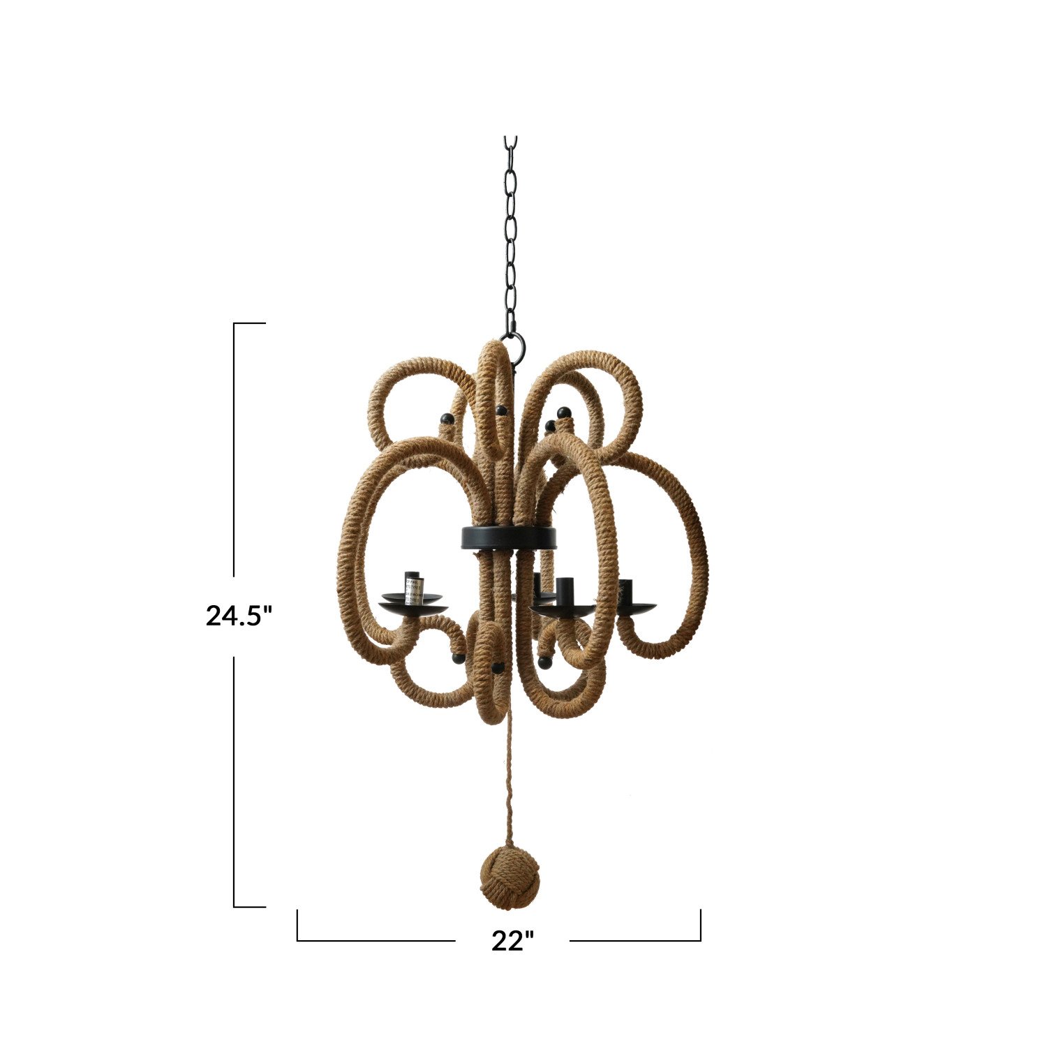 Jute Wrapped Metal Chandelier w/ 5 Lights, 5' Chain & 5' Cord (Hardwire Only)