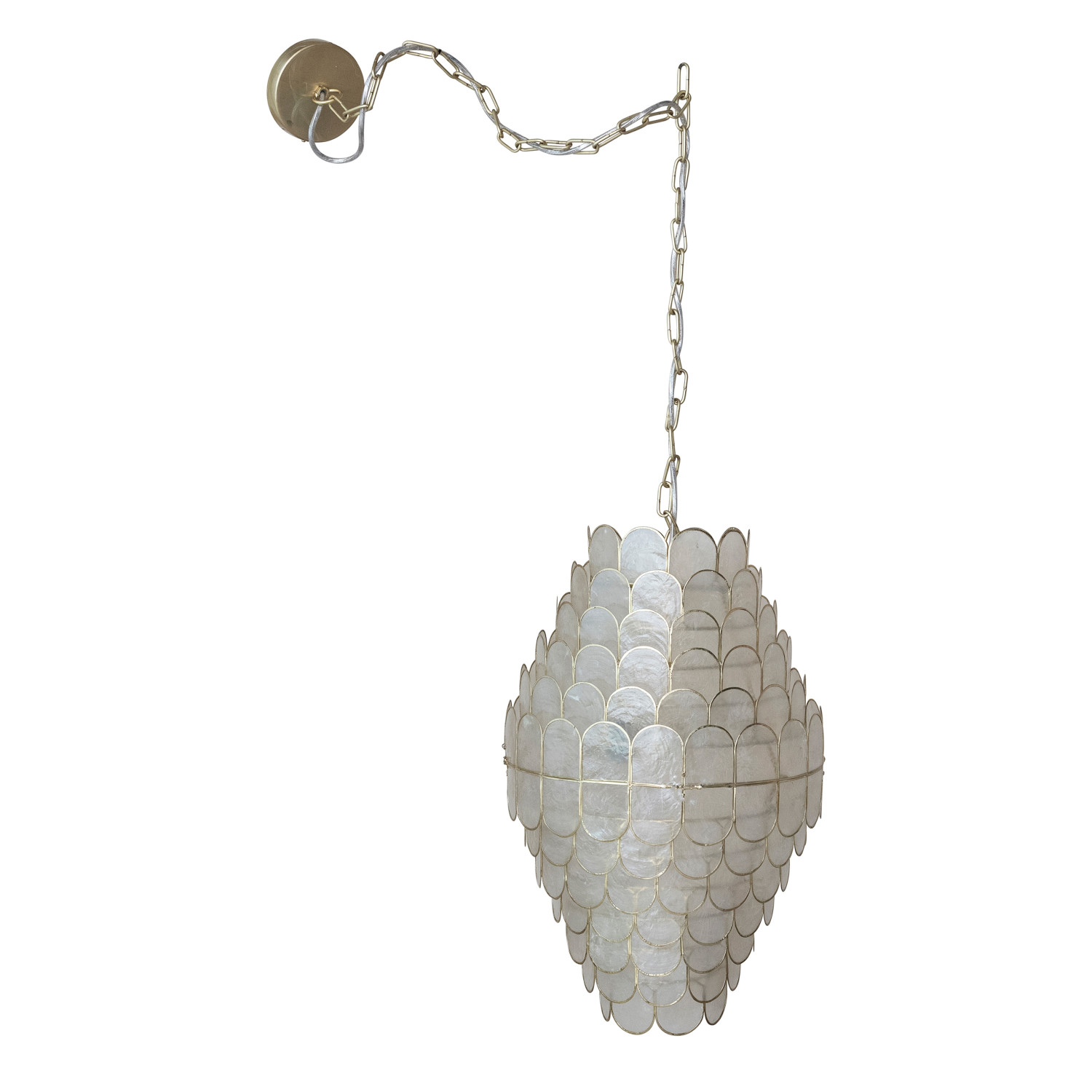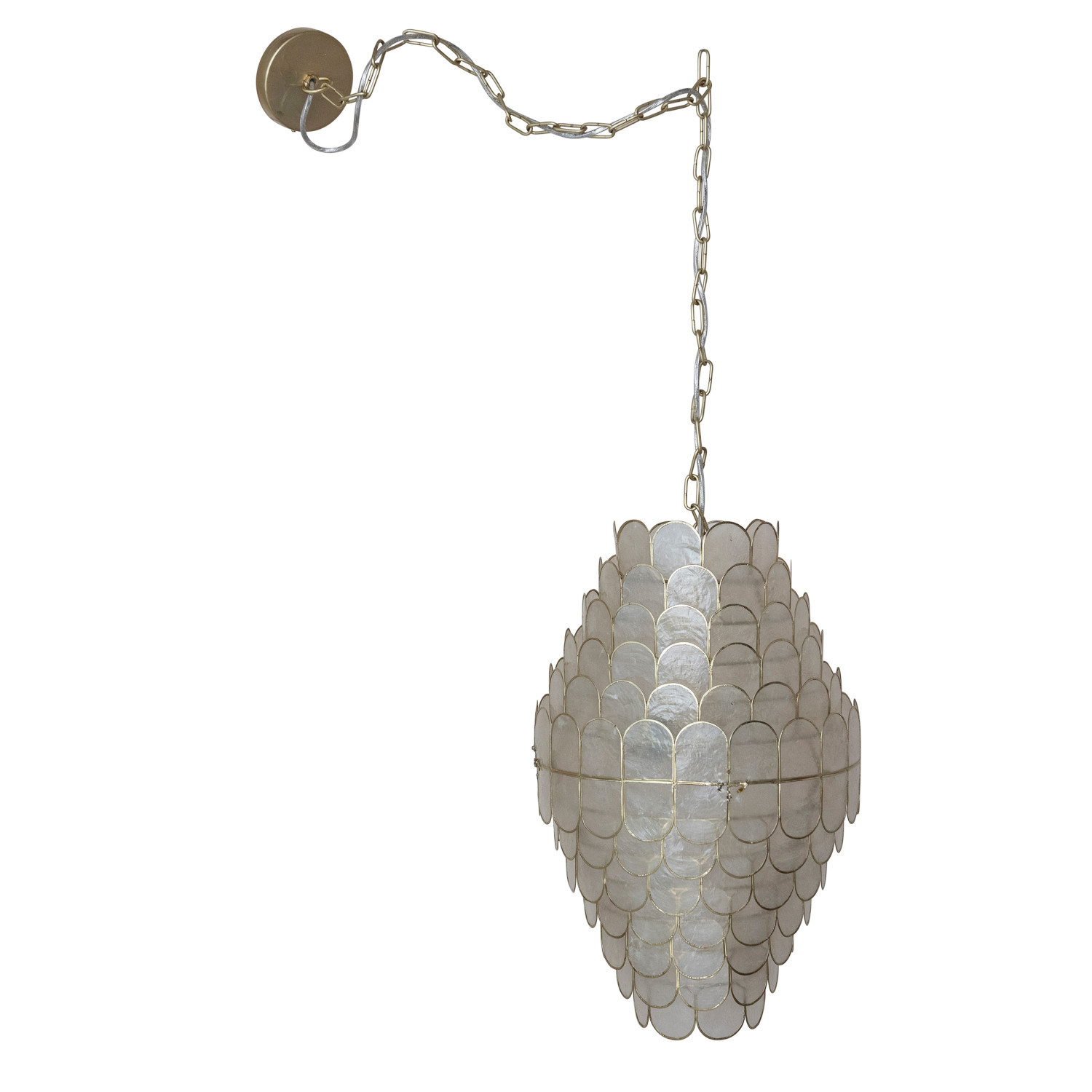 Catalog Name: 14" Round x 23"H Capiz Pendant Lamp, 2 Lights, 4' Chain & 5' Cord, Natural & Gold Finish (Hardwire Only)