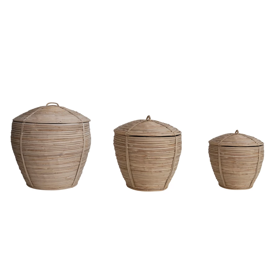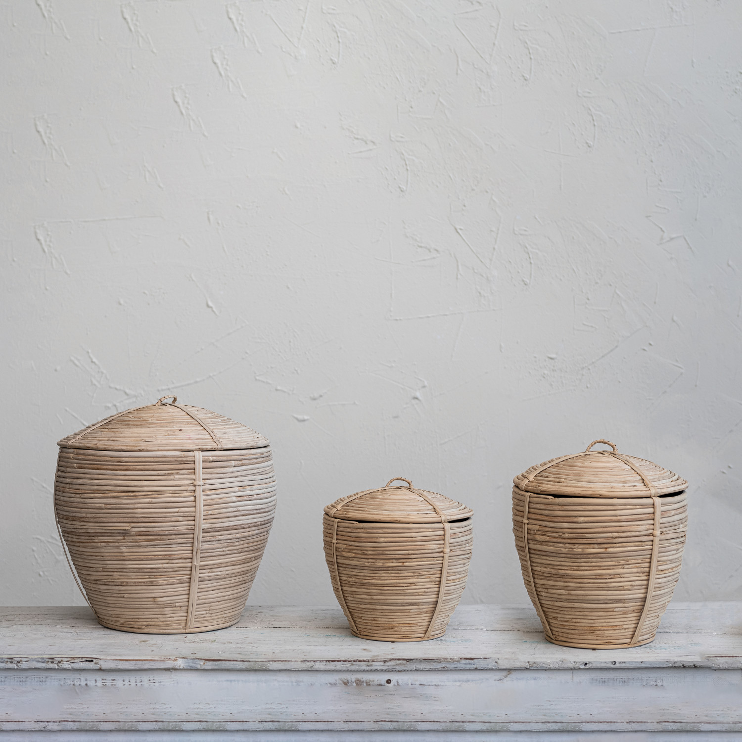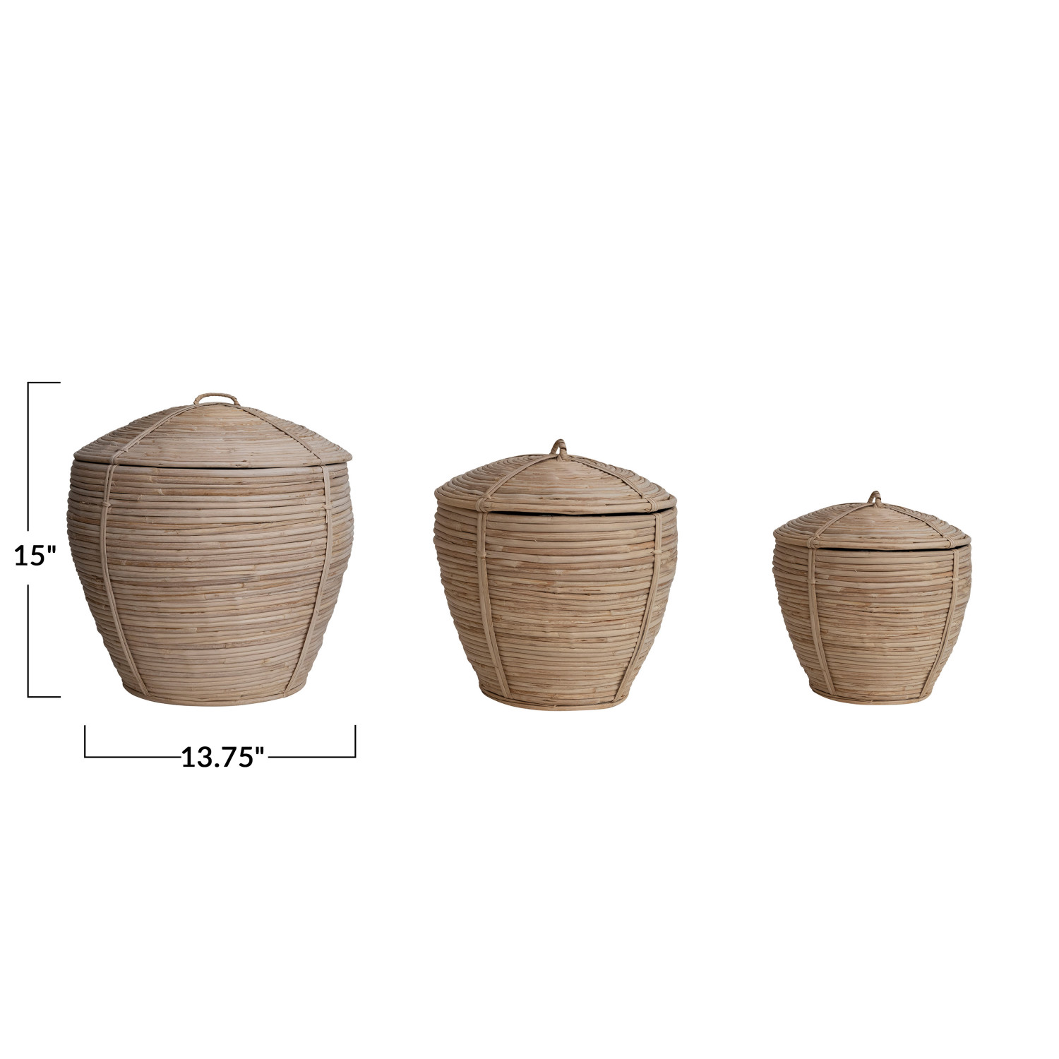 Handmade Rattan Baskets w/ Lids, Natural, Set of 3