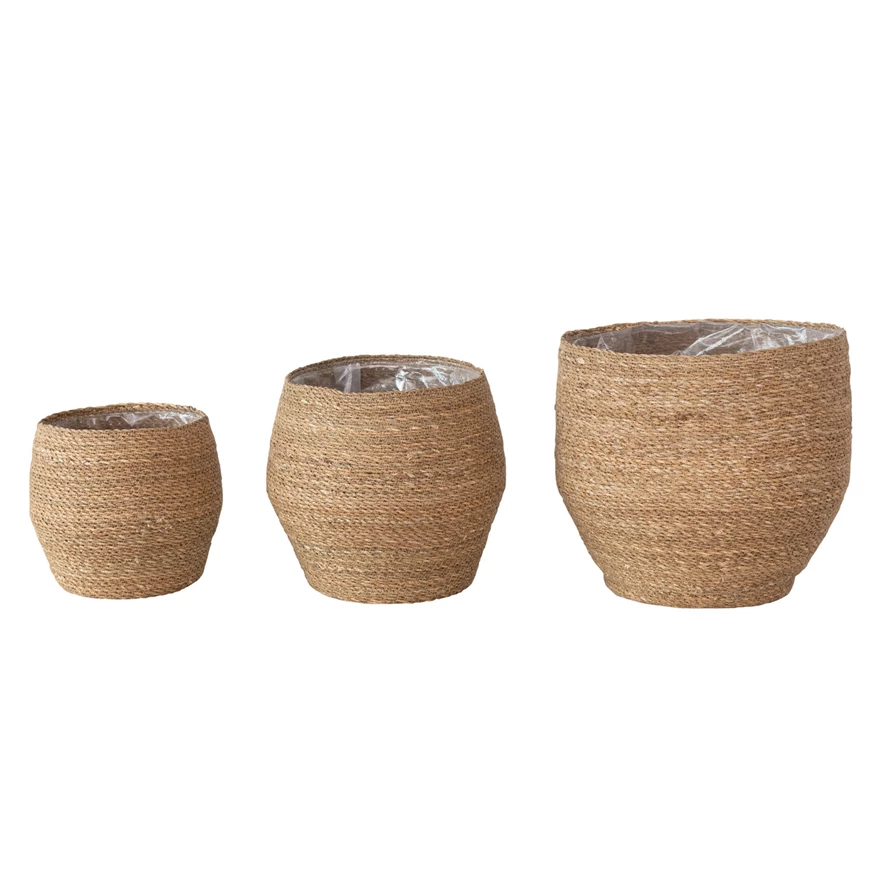 Decorative Woven Seagrass Baskets w/ Plastic Lining, Set of 3