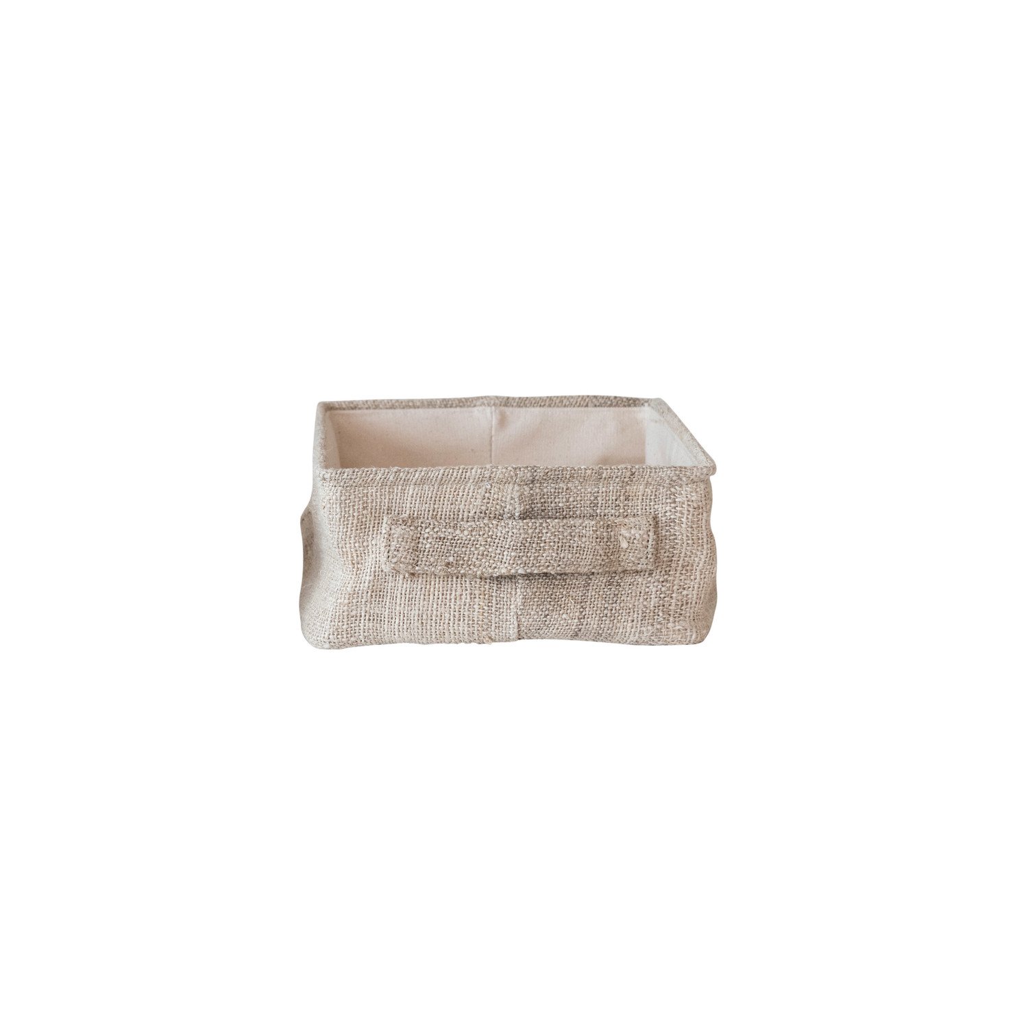 Woven Hemp Fiber & Wire Container w/ Cotton Canvas Lining & Handle