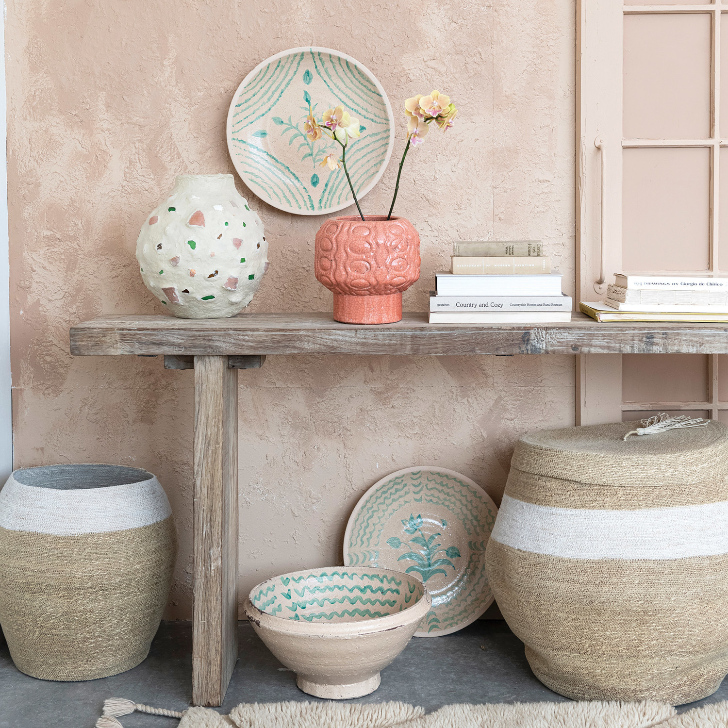 This set of 2 baskets is a unique and rustic storage solution. The round shape with a woven seagrass texture and lid adds a touch of elegance. The natural and white stripe and tassel design adds a touch of fun. Made from eco-friendly seagrass, these baskets are easy to clean and can be used to store blankets, pillows, toys, magazines, or other items. They complement any decor and style, adding charm and texture to any space. Whether placed in the living room, bedroom, hallway, or porch, these baskets bring a touch of farmhouse, boho, Scandinavian, French country, or coastal style to the home. This versatile and unique storage item seamlessly blends natural beauty with practicality.