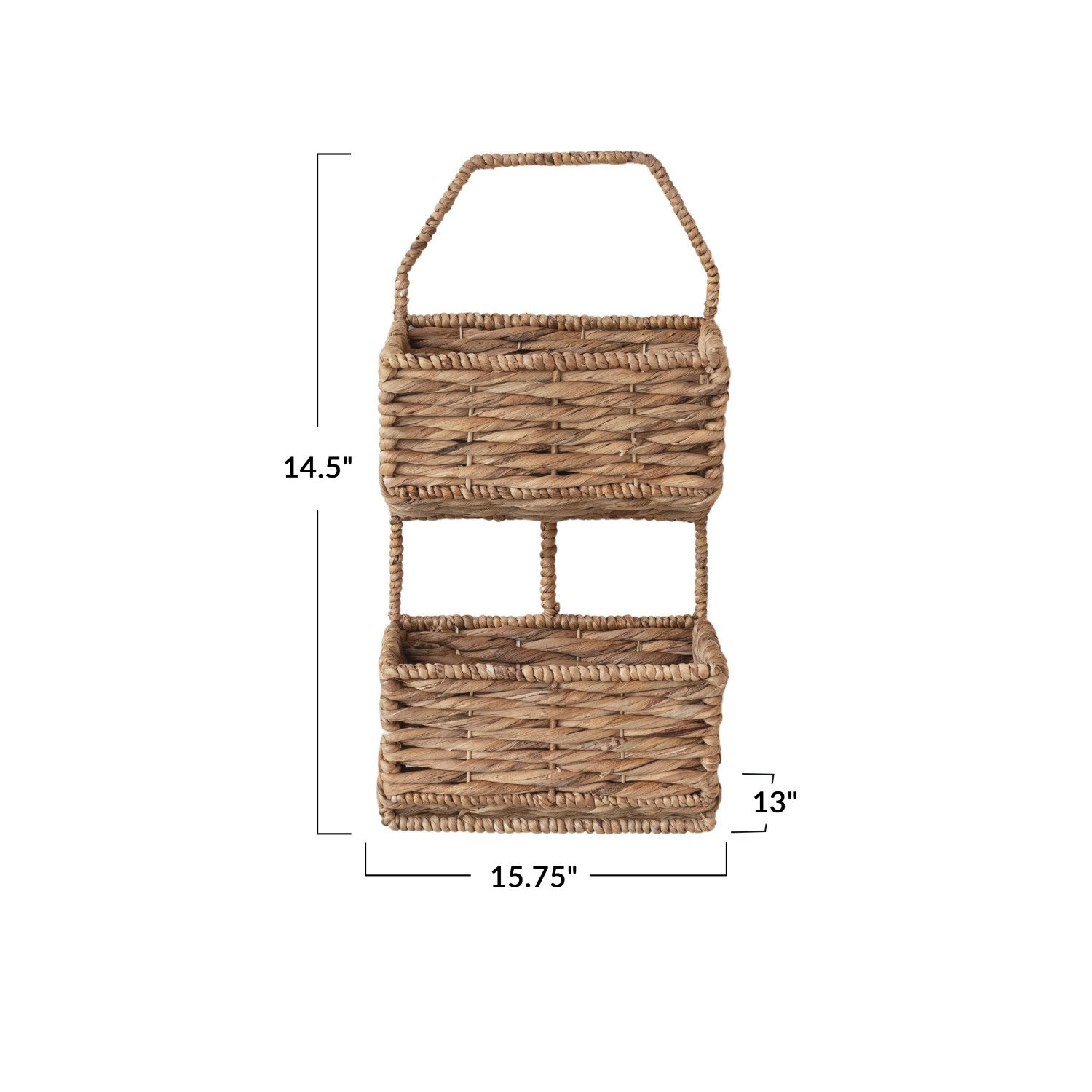 Catalog Name: 15-3/4"W x 13"D x 14-1/2"H Metal & Water Hyacinth 2-Tier Wall Basket, Natural