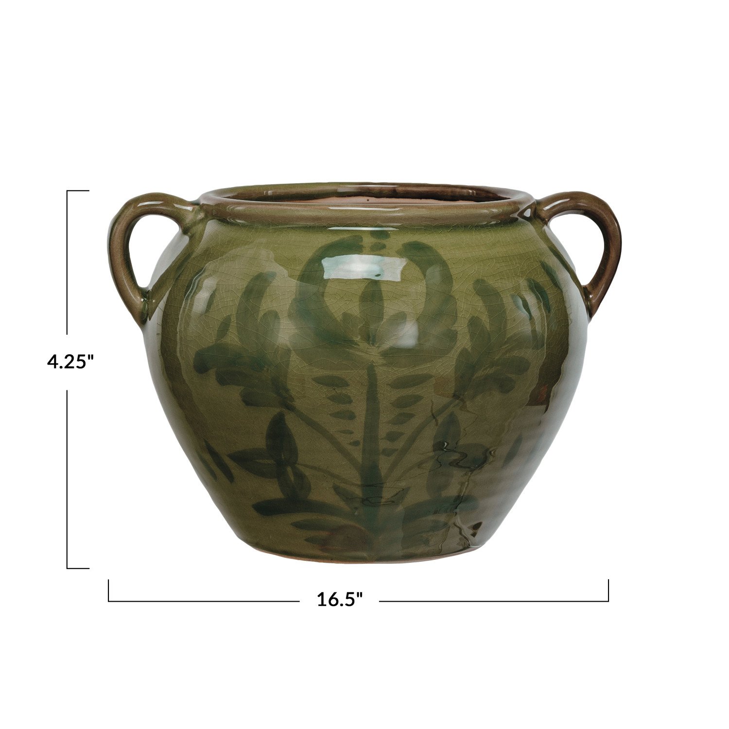 Hand-Painted Terra-cotta Urn w/ Handles (Each One Will Vary)