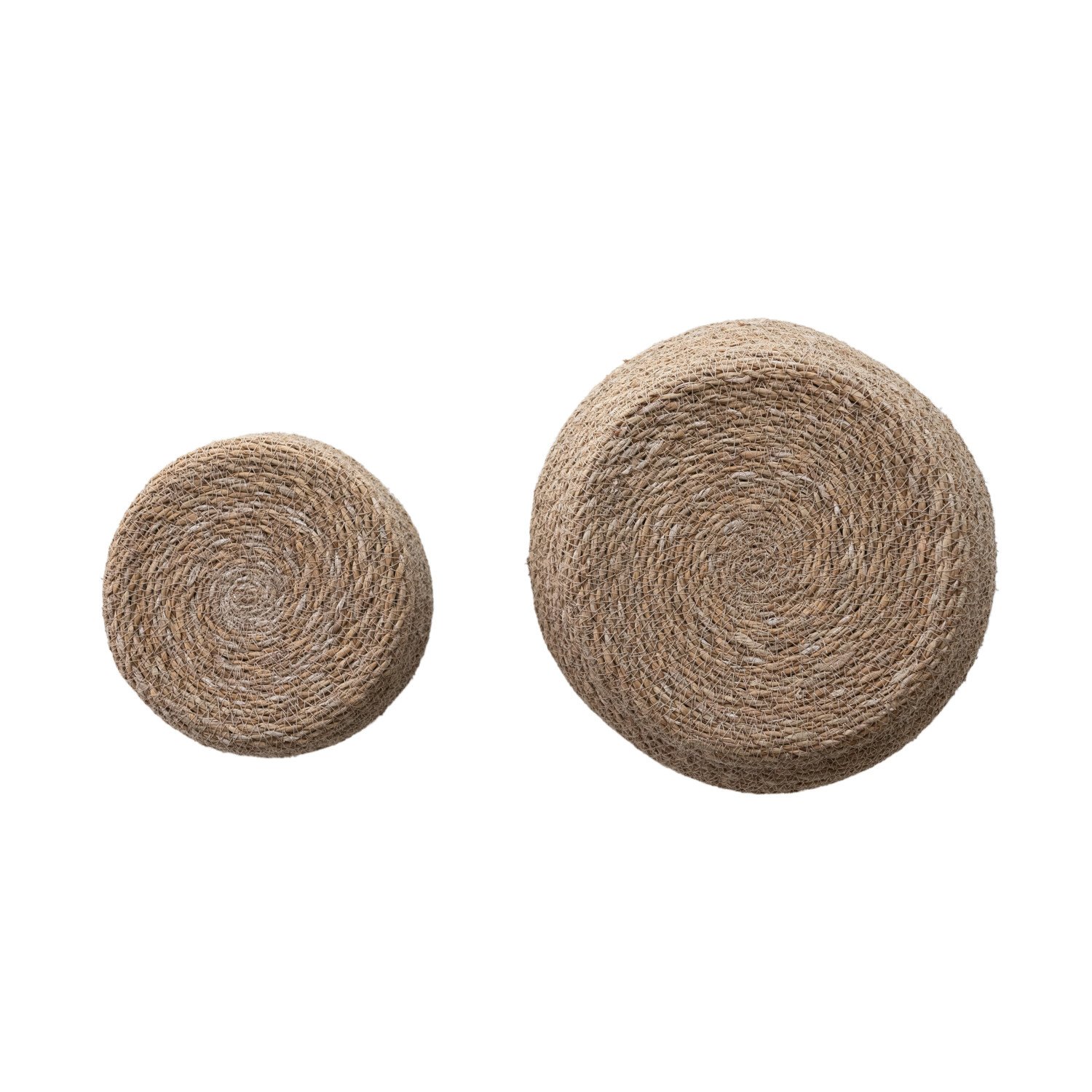 Catalog Name: 10-3/4" Round x 6-1/4"H & 7-1/2" Round x 4-3/4"H Hand-Woven Seagrass Baskets w/ Lids, Natural, Set of 2