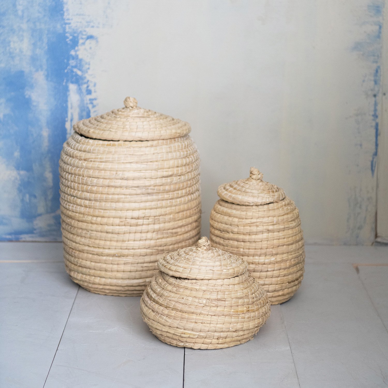 Catalog Name: 12-1/4" Round x 8"H Woven Straw Basket w/ Lid, Natural