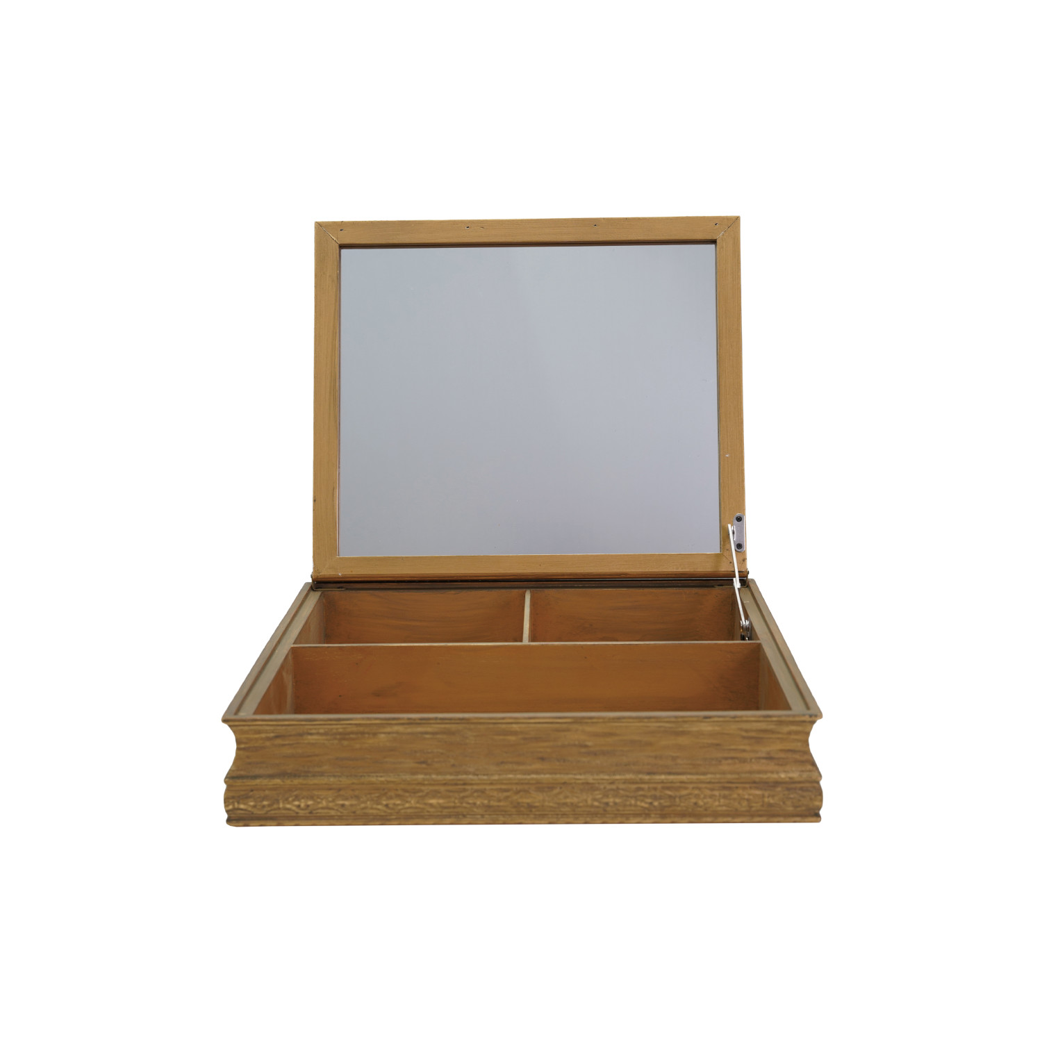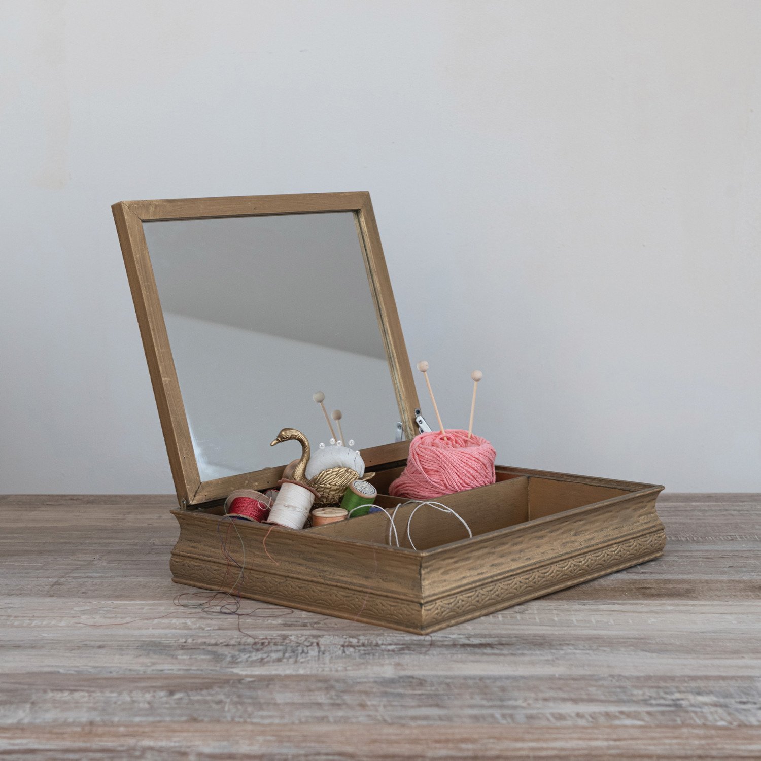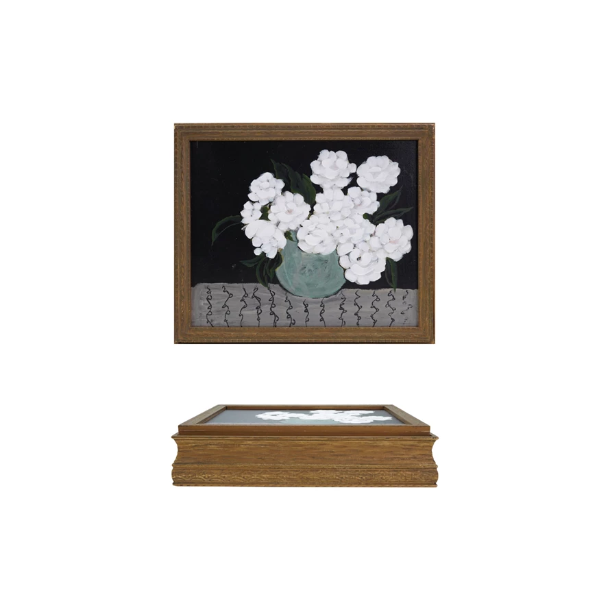 Catalog Name: 13-3/4"L x 11-3/4"W x 3"H Hand-Painted Wood Box w/ 3 Compartments, Mirror & Flowers in Vase, Multi Color ©
