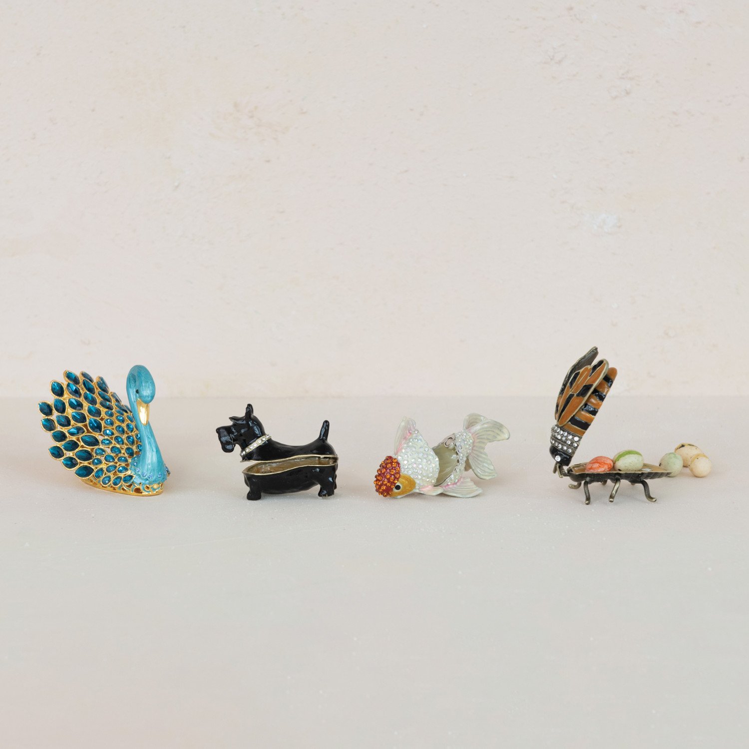 Catalog Name: 2-1/4"L x 1-1/4"W x 1-1/2"H Enameled Metal Scottie Shaped Trinket Box w/ Jewels, Gold Finish & Black