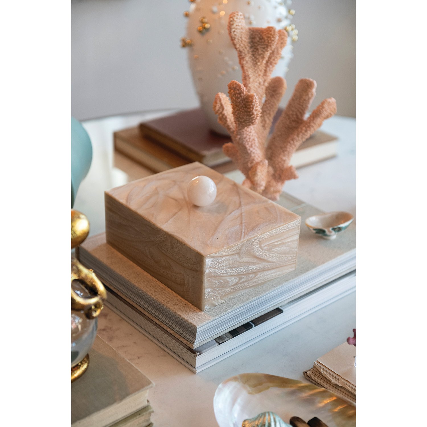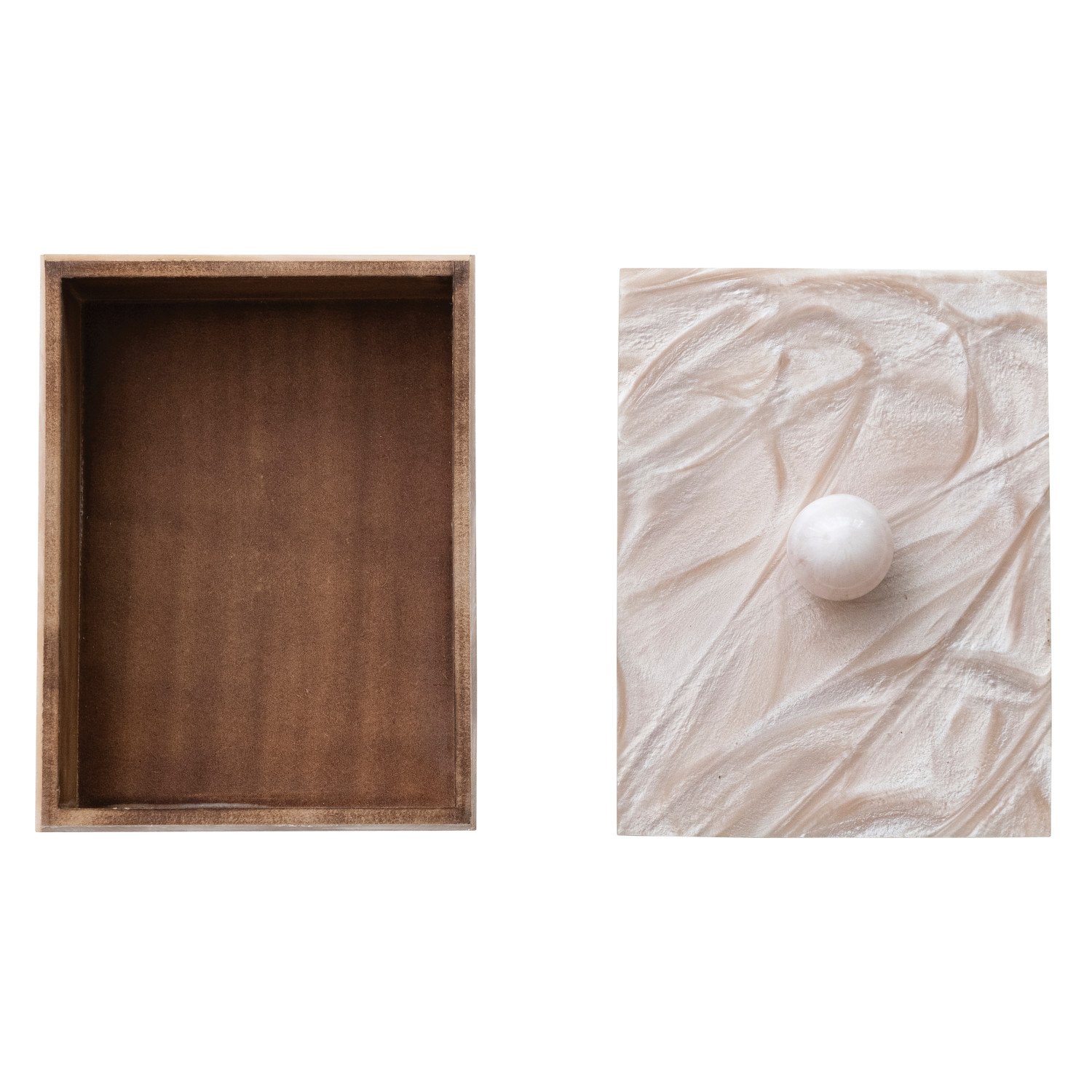 Marbled Resin & MDF Box with Ball Handle, Pearlized Finish (Each One Will Vary)