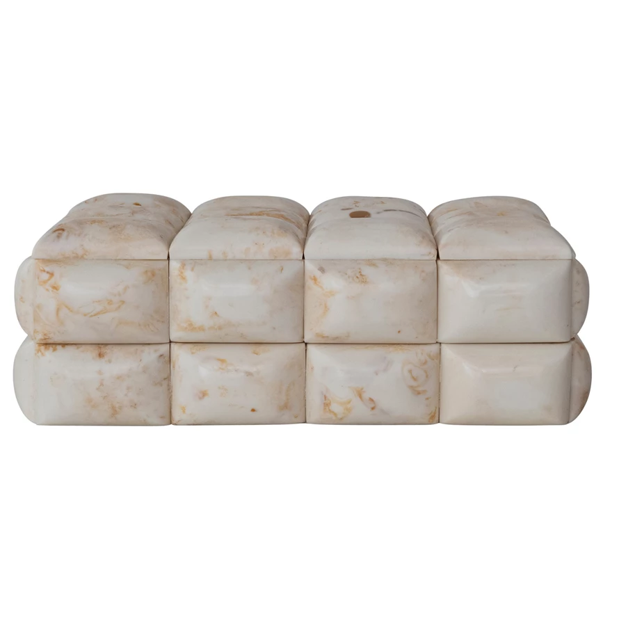 Catalog Name: 12"L x 7"W x 4"H Marbled Resin Tile & MDF Box, Ivory Color (Each One Will Vary)