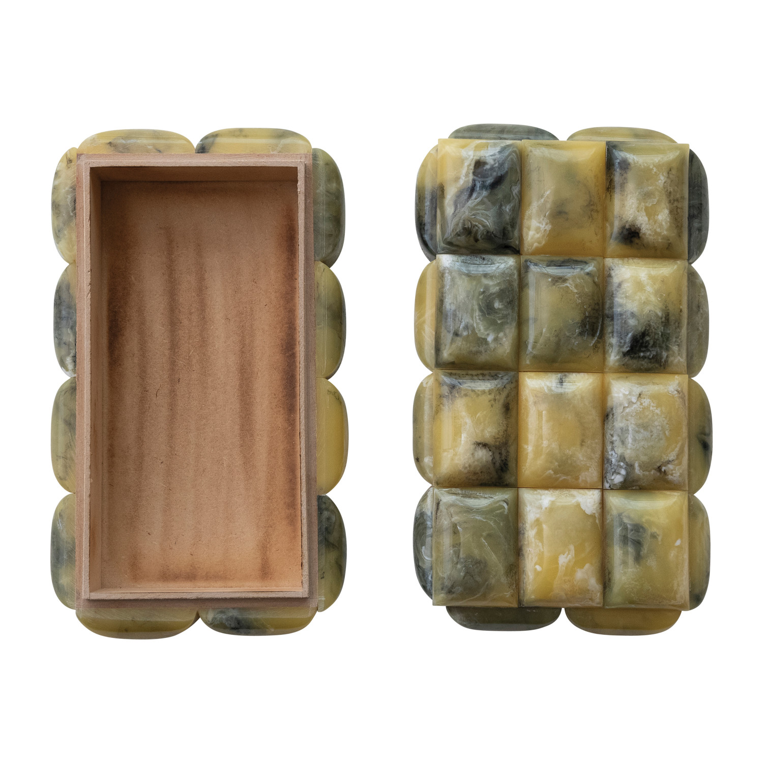 Marbled Resin Tile & MDF Box, Green (Each One Will Vary)