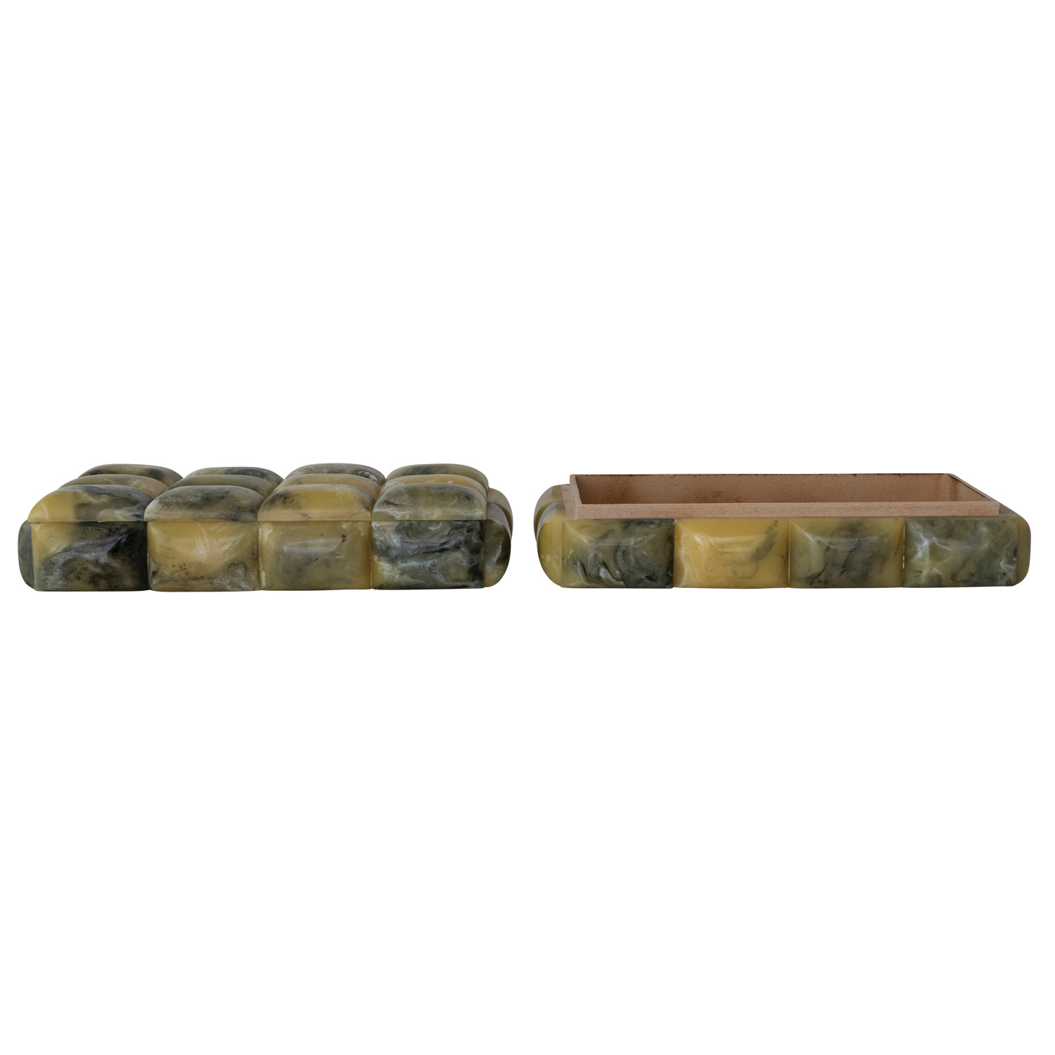 Catalog Name: 12"L x 7"W x 4"H Marbled Resin Tile & MDF Box, Green (Each One Will Vary)