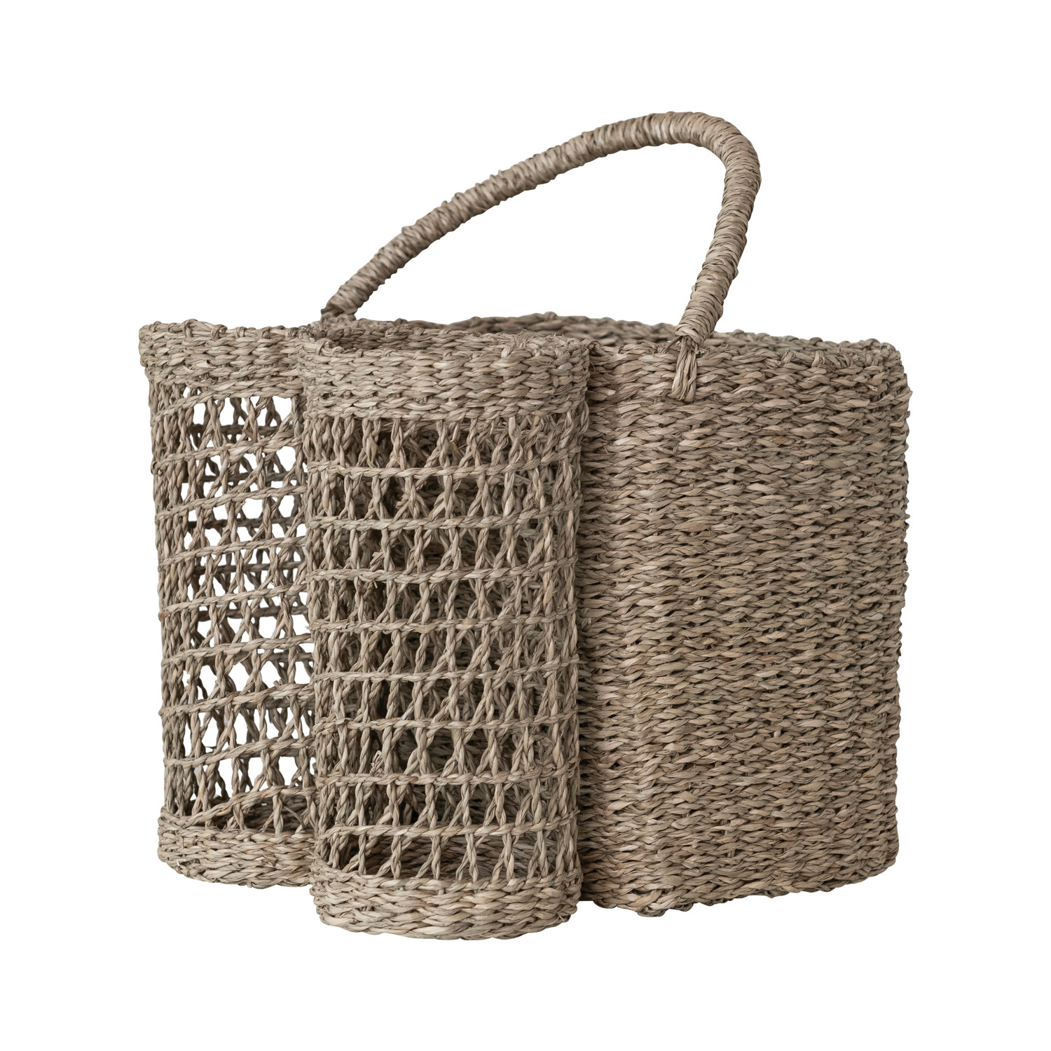 Hand-Woven Seagrass Basket with Handle & Bottle Holders, Natural (Holds 2 Bottles)