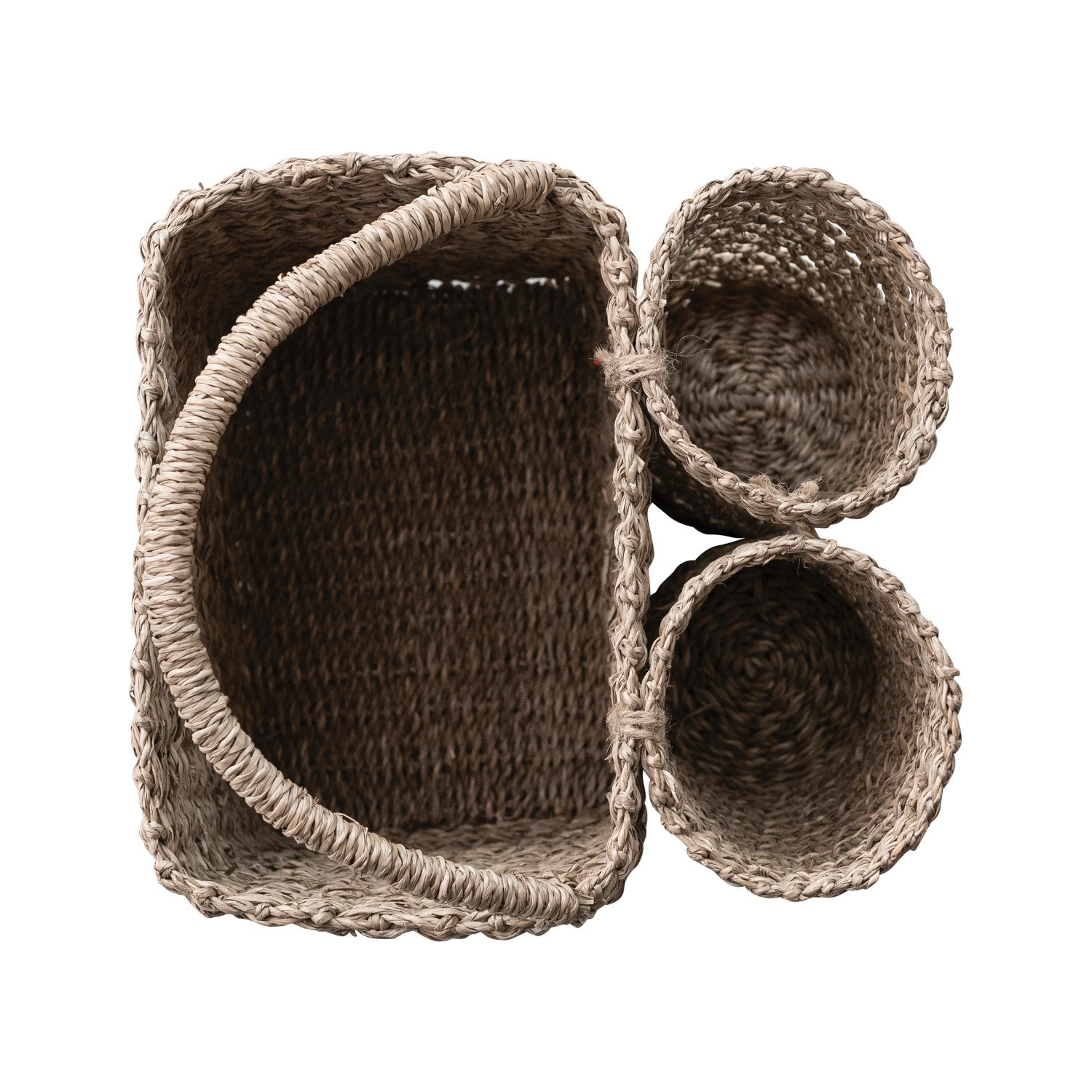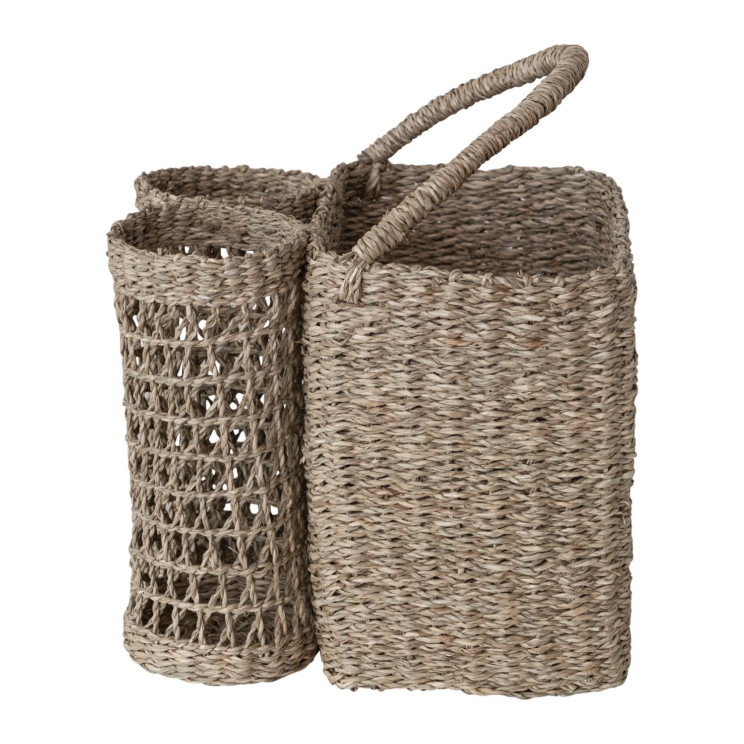 Hand-Woven Seagrass Basket with Handle & Bottle Holders, Natural (Holds 2 Bottles)