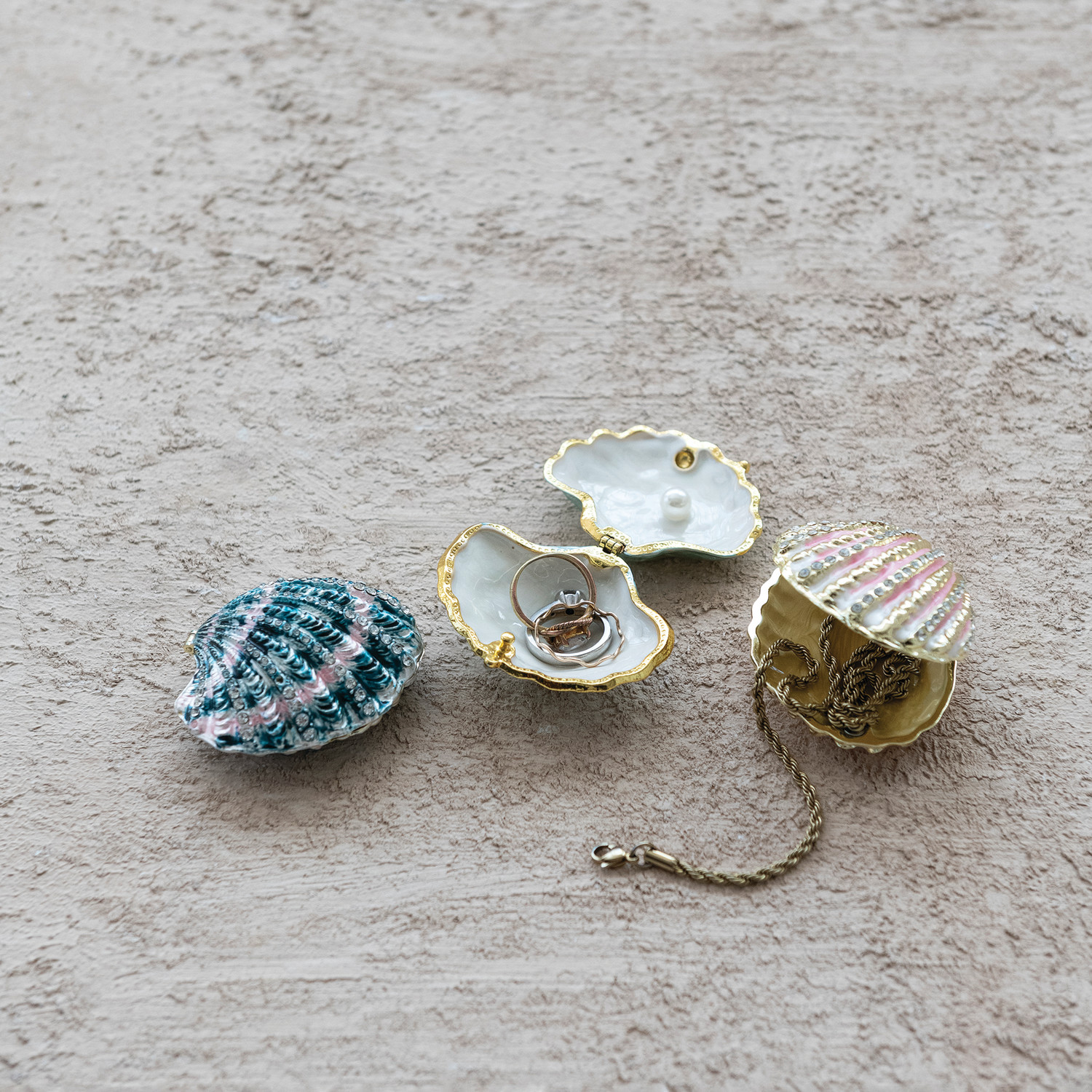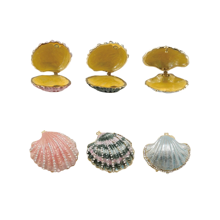 Enameled Metal Shell Shaped Trinket Box with Jewels, 3 Styles