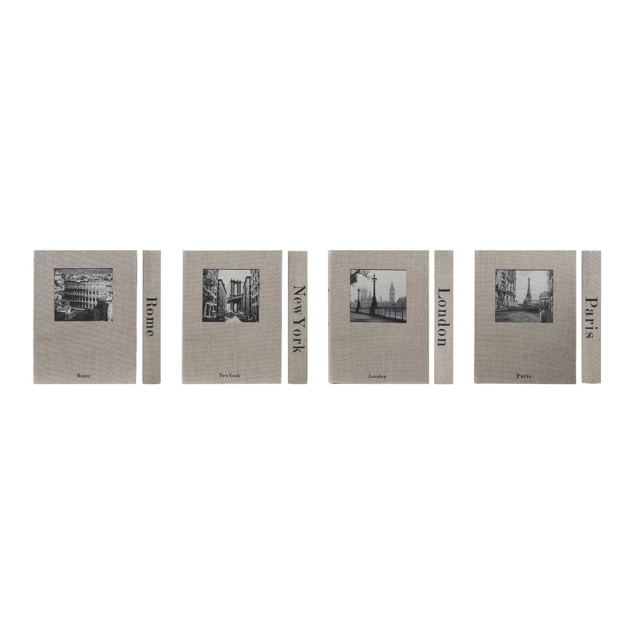 Catalog Name: 11-1/4"L x 8-1/2"W MDF & Linen Book Storage Box w/ City Name & Image, Multi Color, 4 Styles
