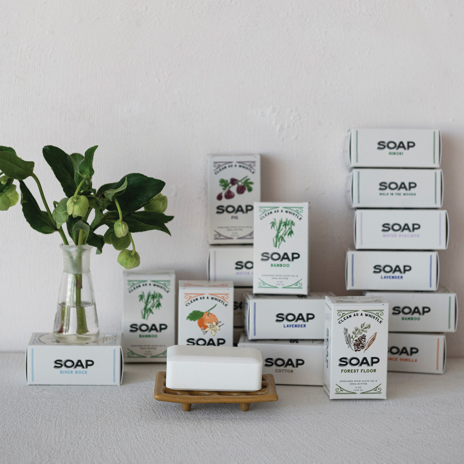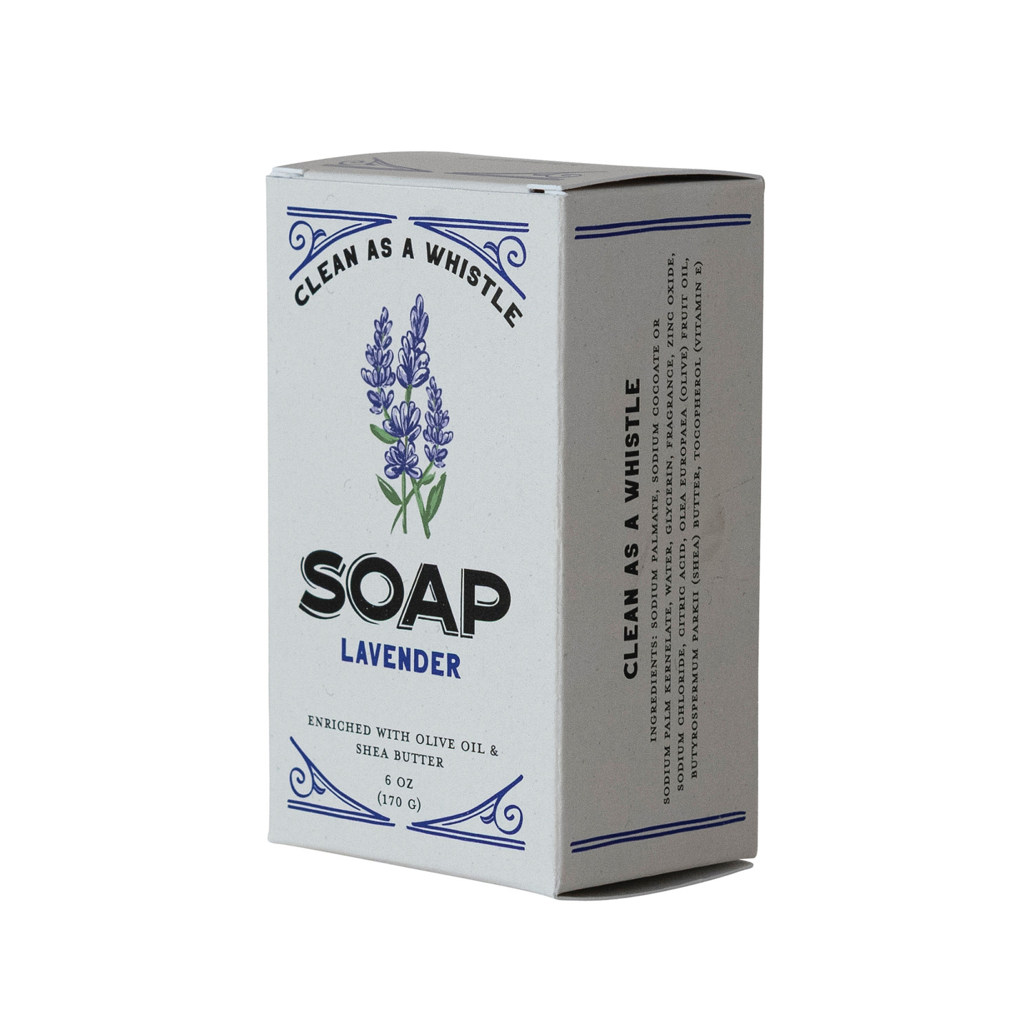 This bar soap is a wonderful addition to any kitchen or bathroom sink. Enriched with olive oil and shea butter, this scented soap has a lavender fragrance. With beautiful packaging detail, this soap looks lovely next to any home's sink. Leaves hands smelling great.