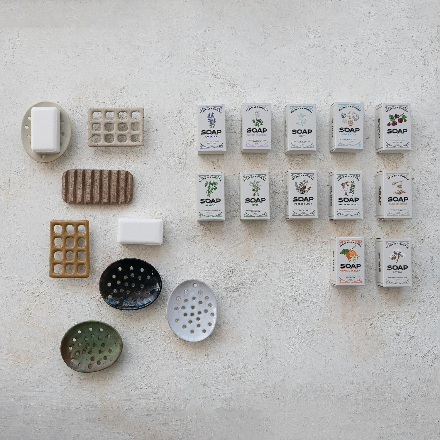 This bar soap is a wonderful addition to any kitchen or bathroom sink. Enriched with olive oil and shea butter, this scented soap has a lavender fragrance. With beautiful packaging detail, this soap looks lovely next to any home's sink. Leaves hands smelling great.