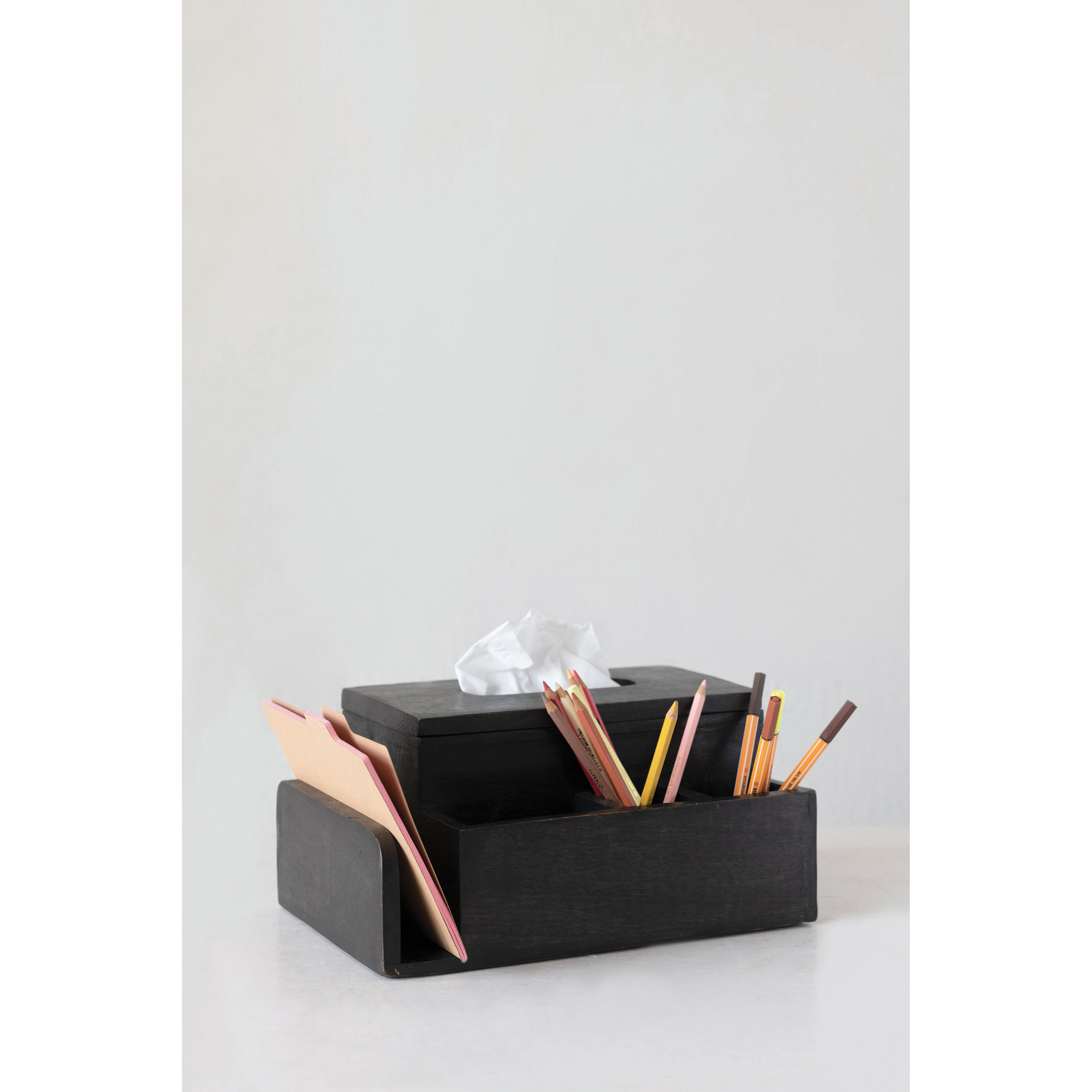 Black mango wood tissue box holder with 4 compartments. Add a touch of style to a powder room or home office with this artfully crafted tissue box holder. Made from 100% mango wood. Curate a space that reflects your unique sense of style with intentionally designed home décor.